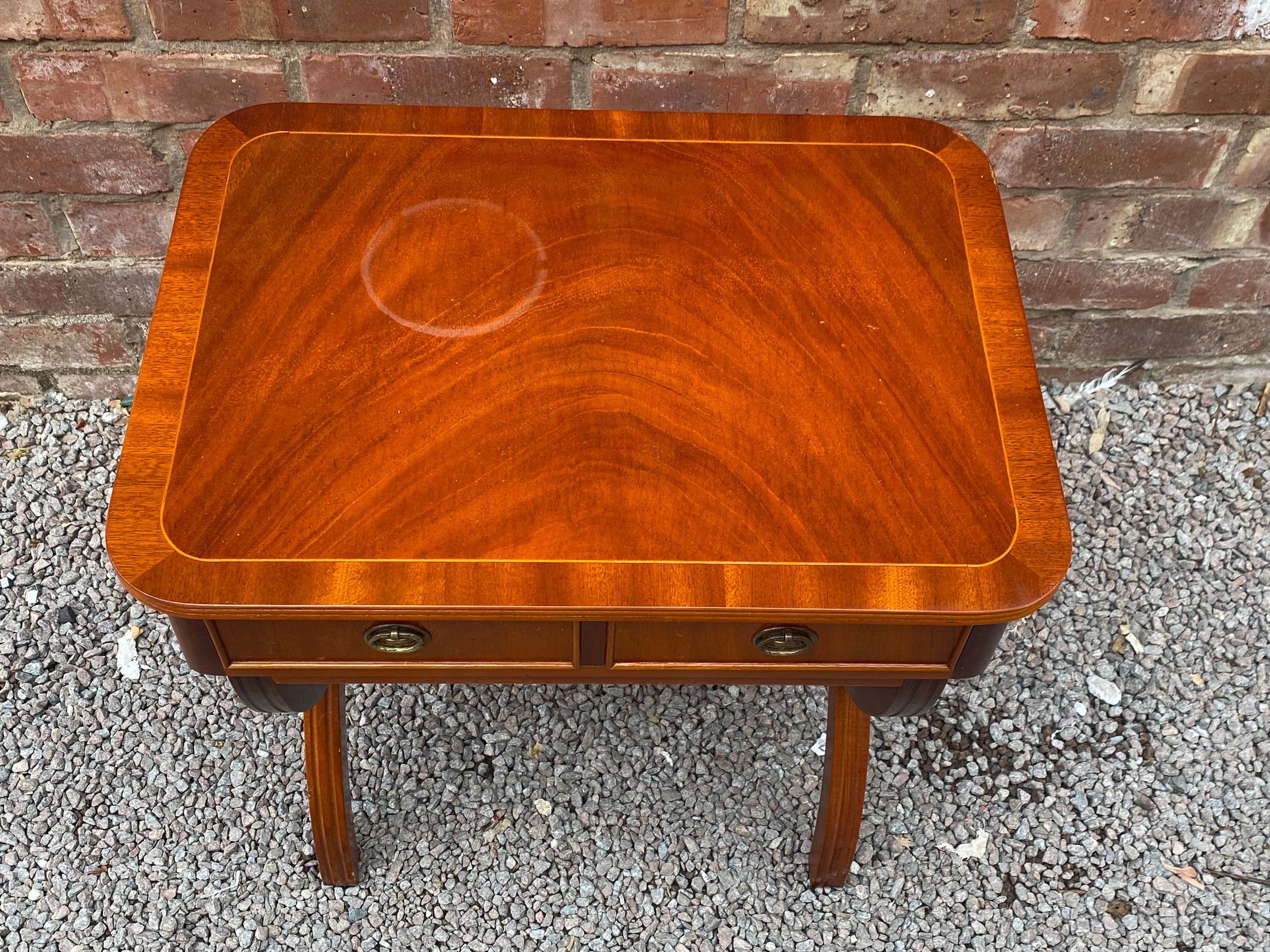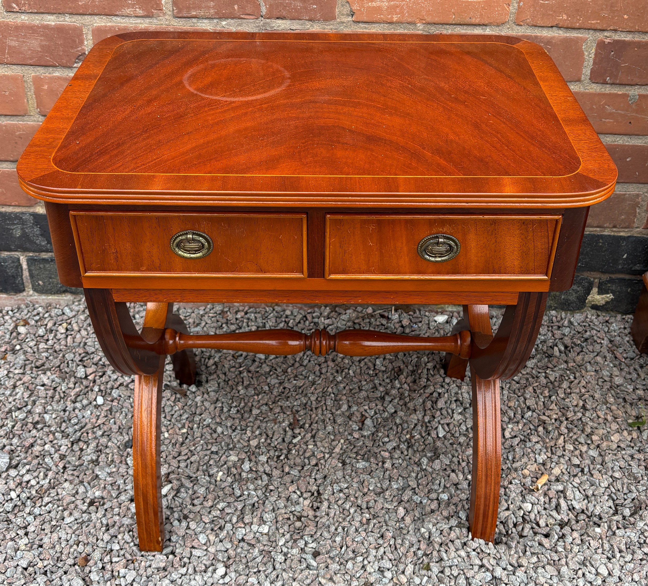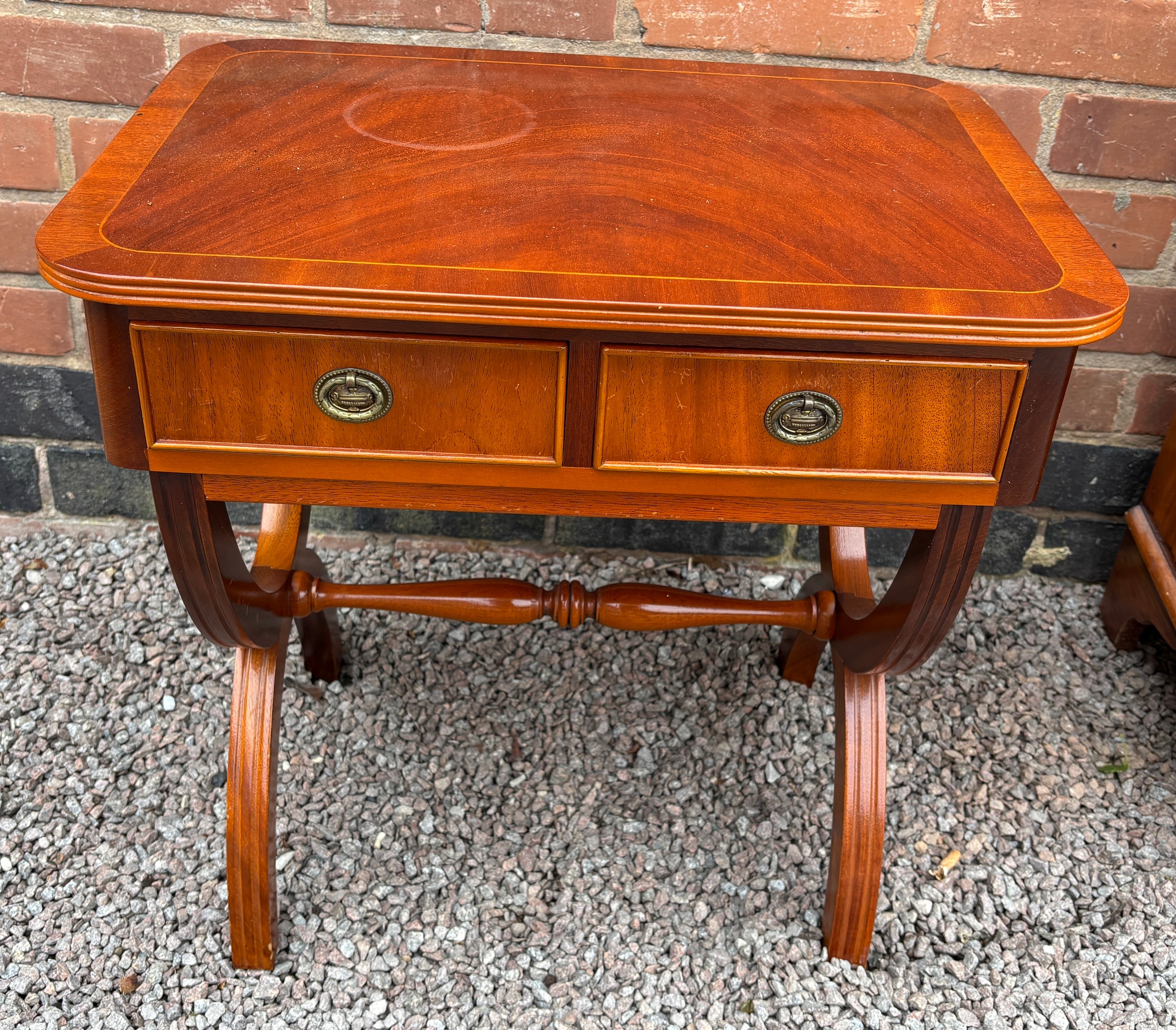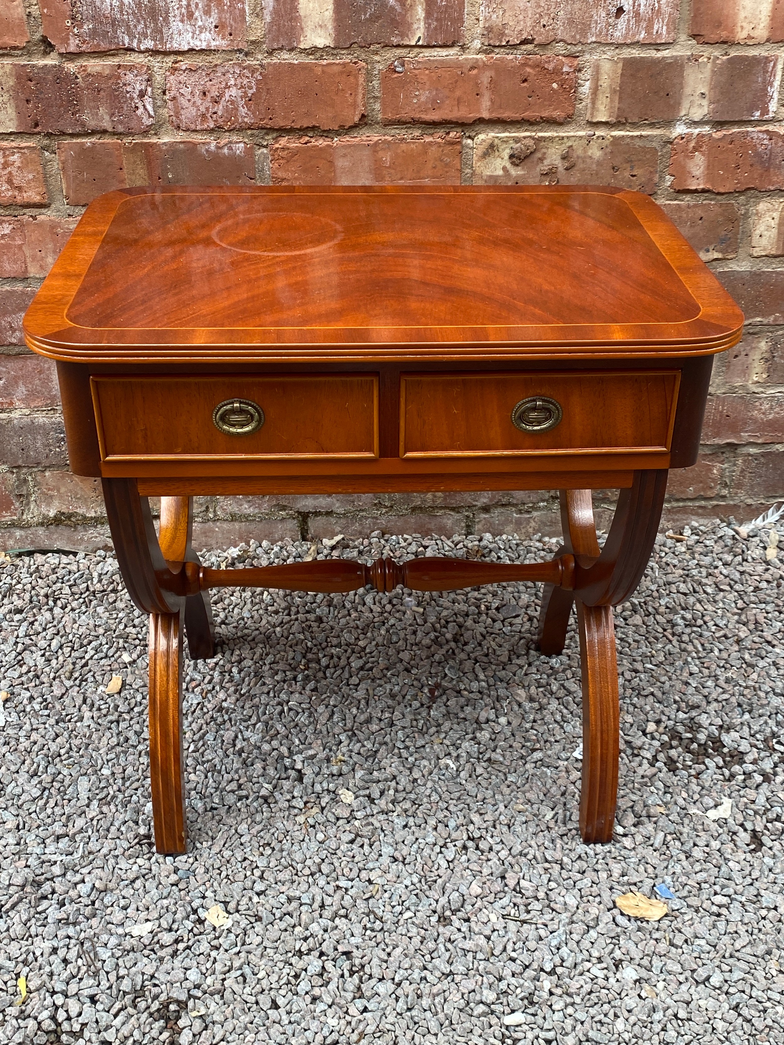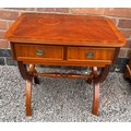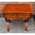 REPRODUCTION REGENCY STYLE YEW CROSSBANDED TWO DRAWER SIDE TABLE
