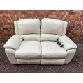 WHITE LEATHER TWO SEATER RECLINING SOFA
