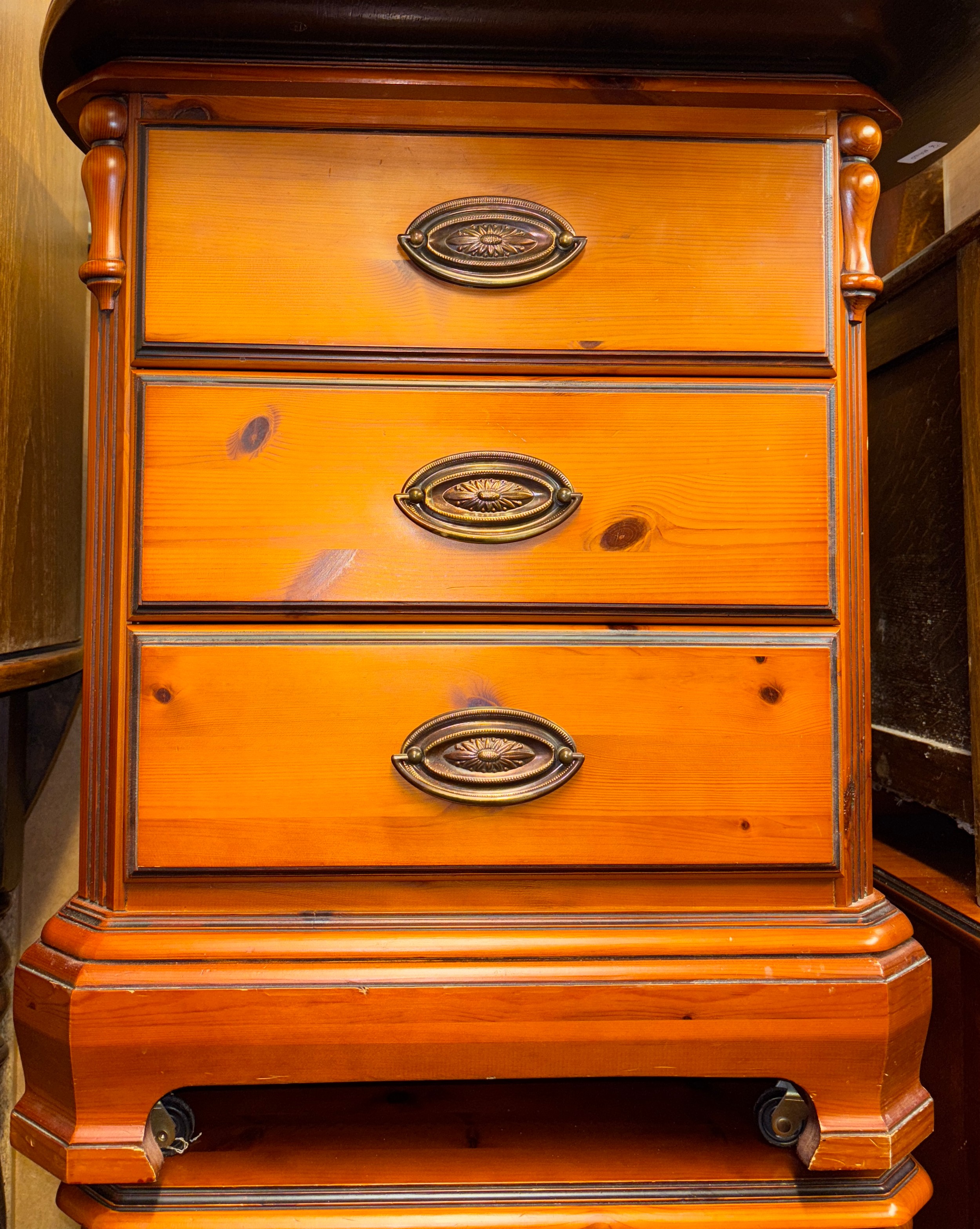 CHATEAUX YEW THREE DRAWER BEDSIDE CHEST WITH CANTED SIDES