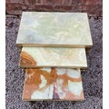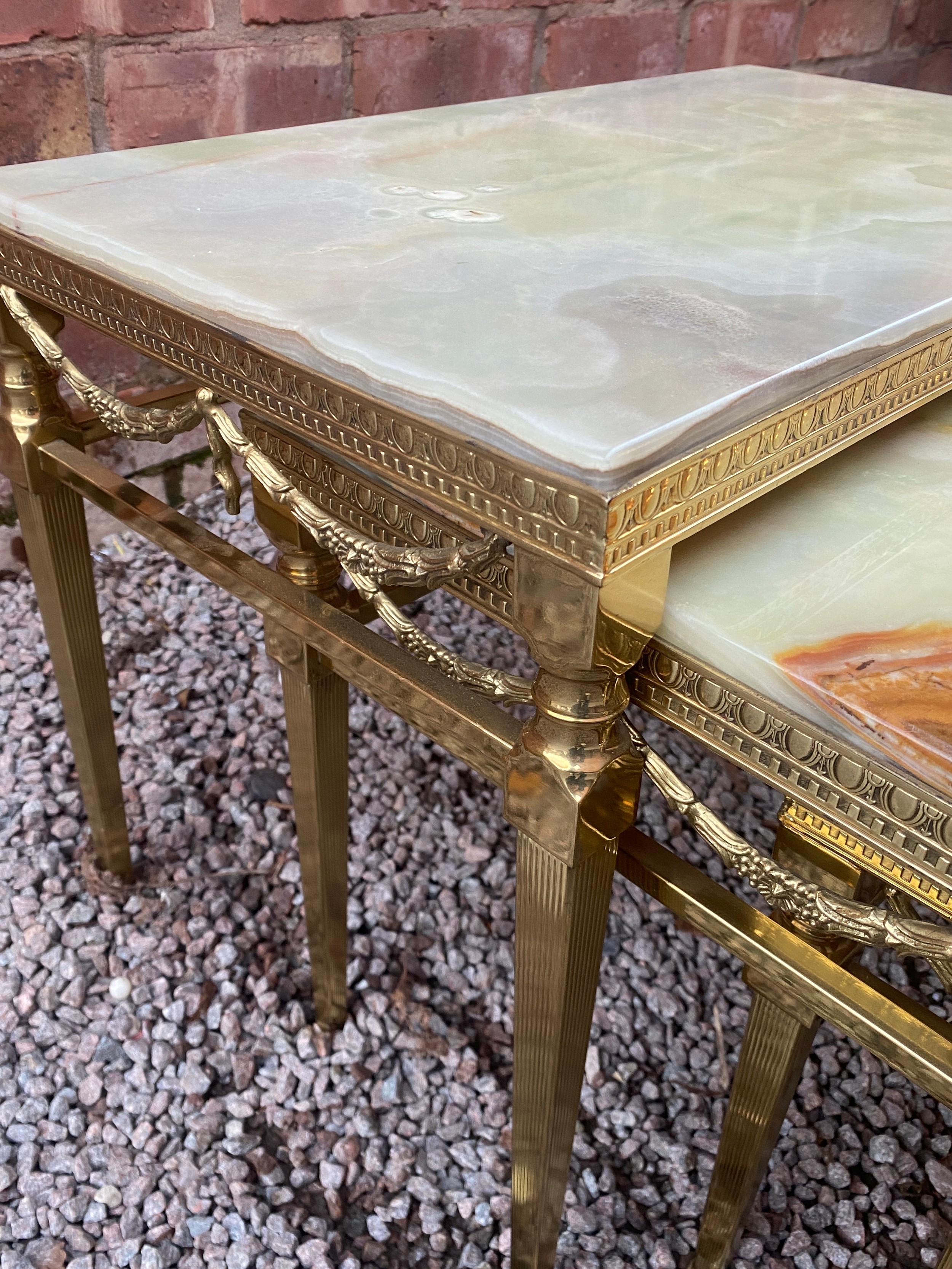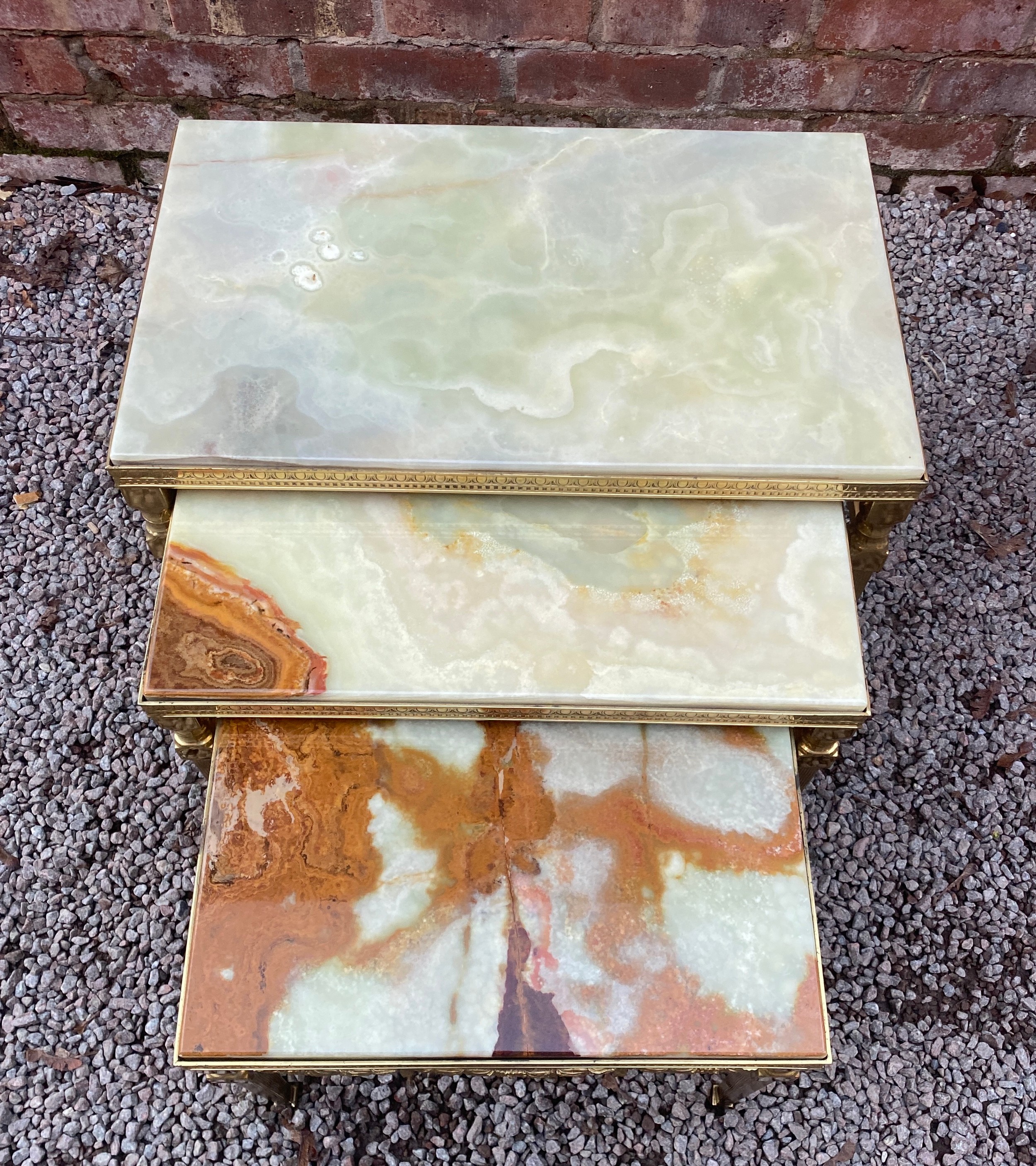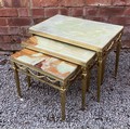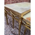 NEST OF THREE GREEN ONYX TABLES WITH GILT BRASS FRAMES