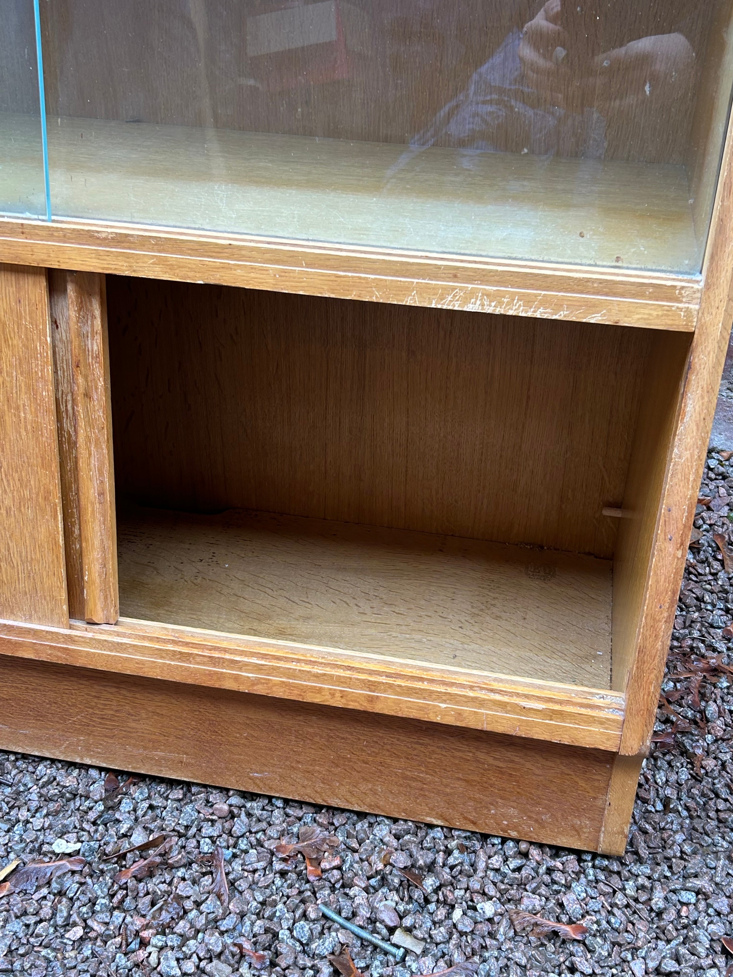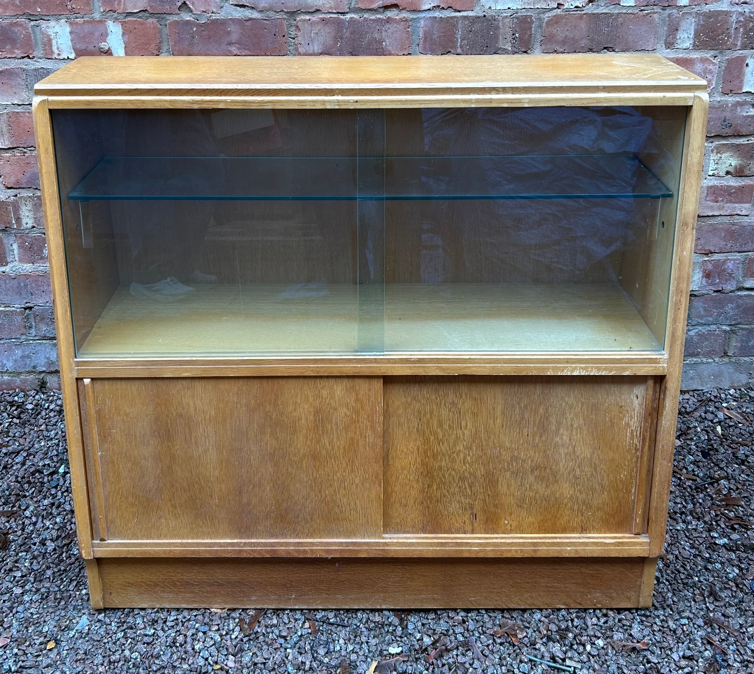 1950/60'S OAK SLIDING DOOR CABINET