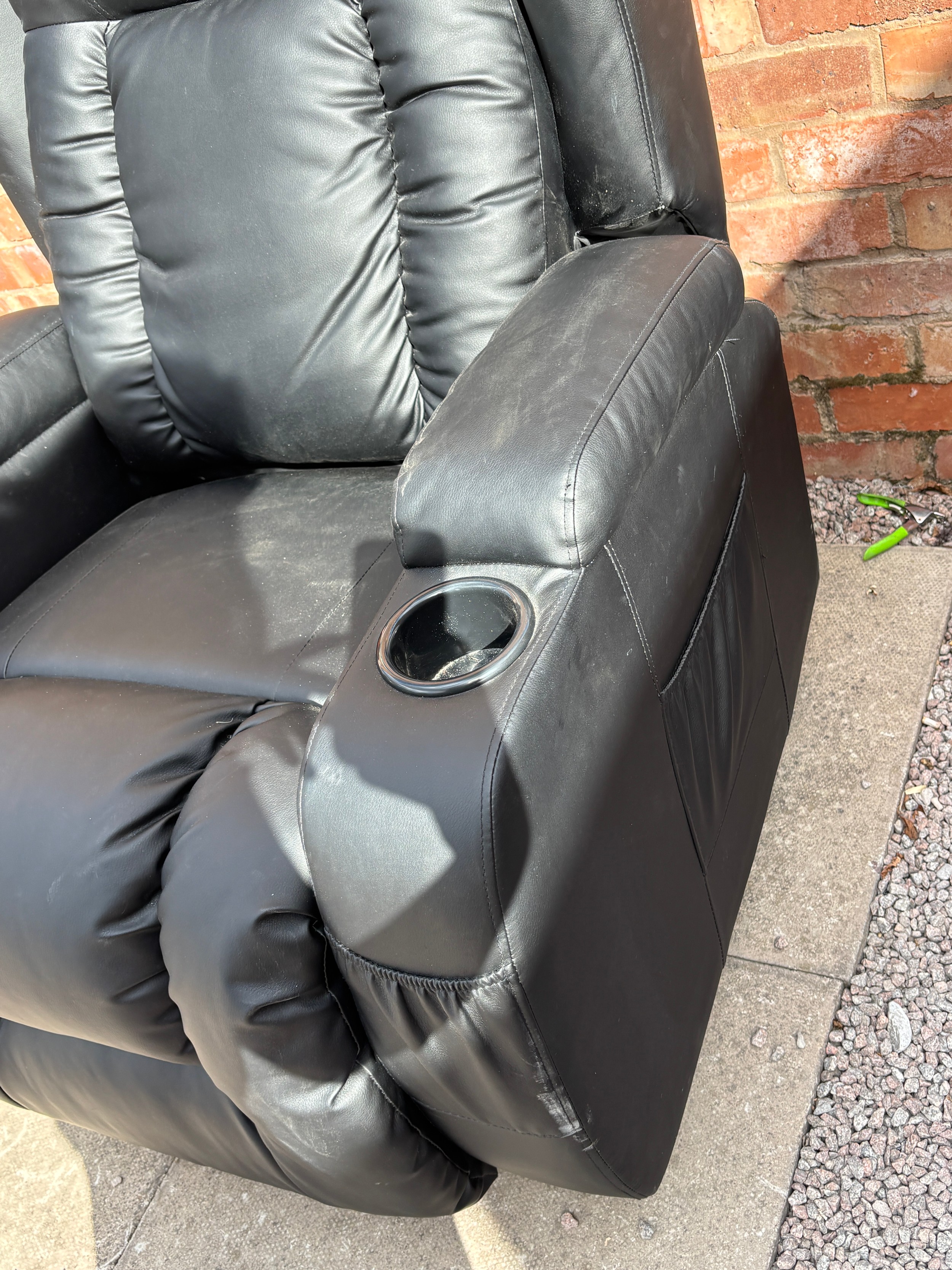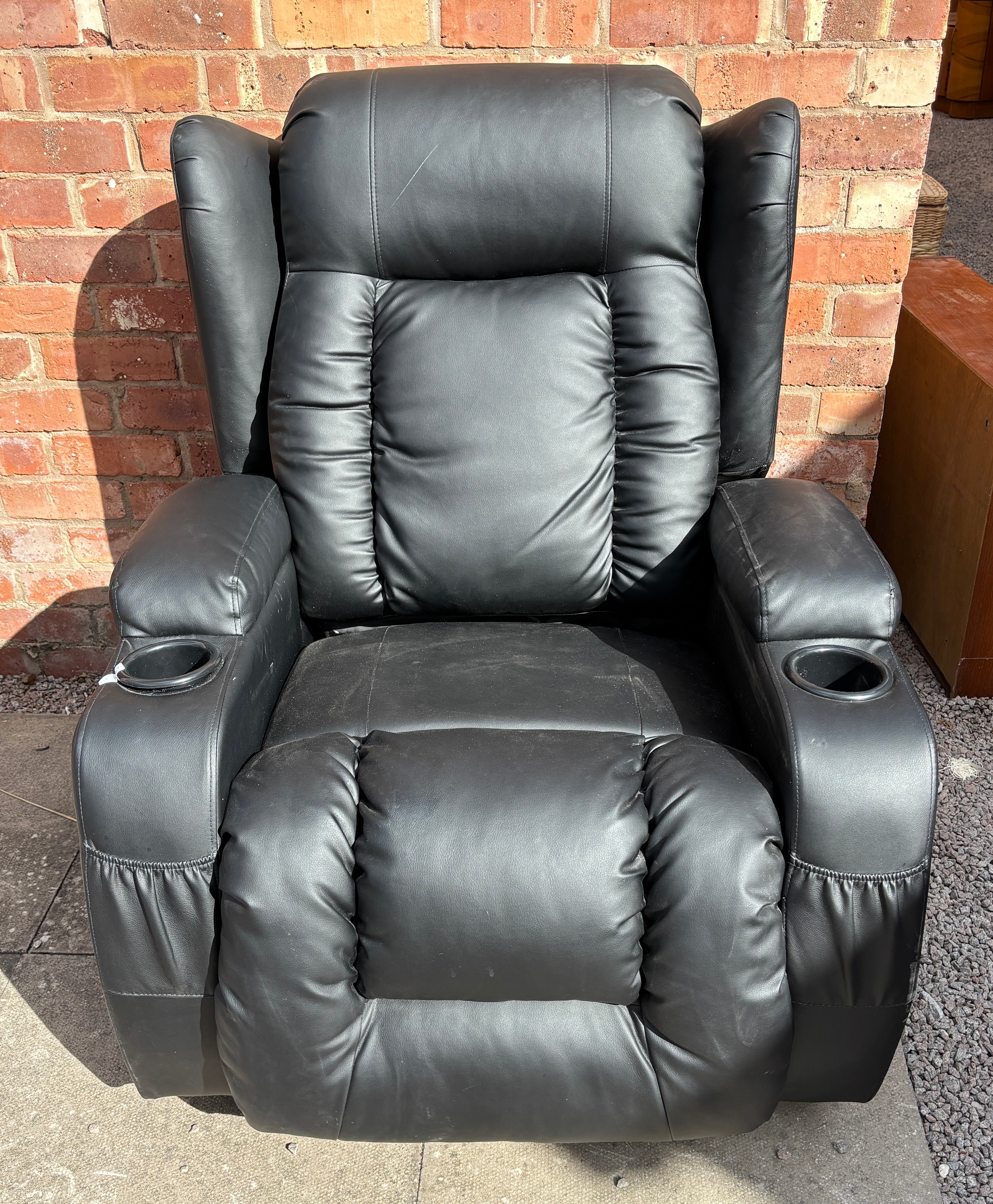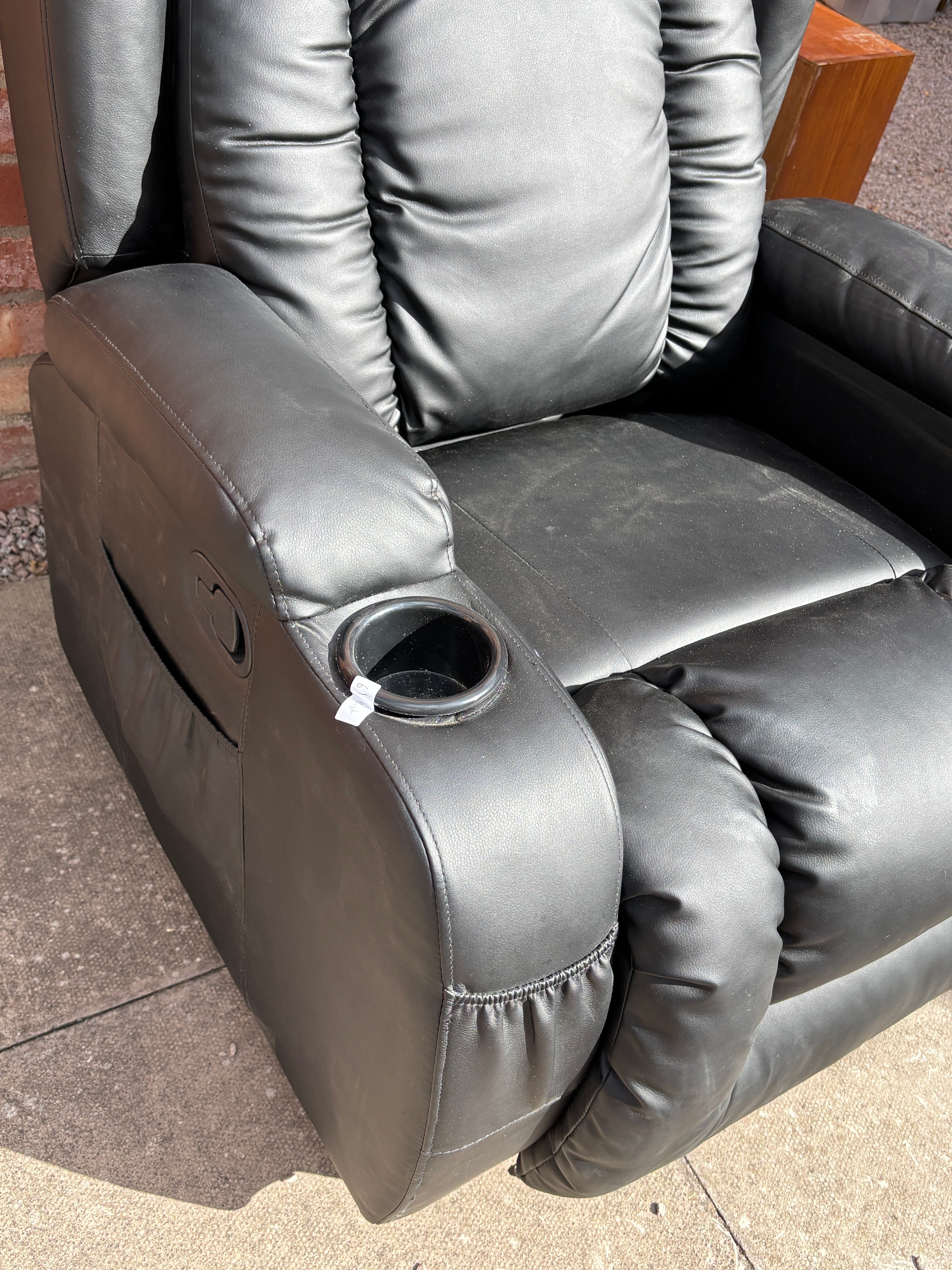 BLACK LEATHER RECLINING ARMCHAIR WITH CUP HOLDERS