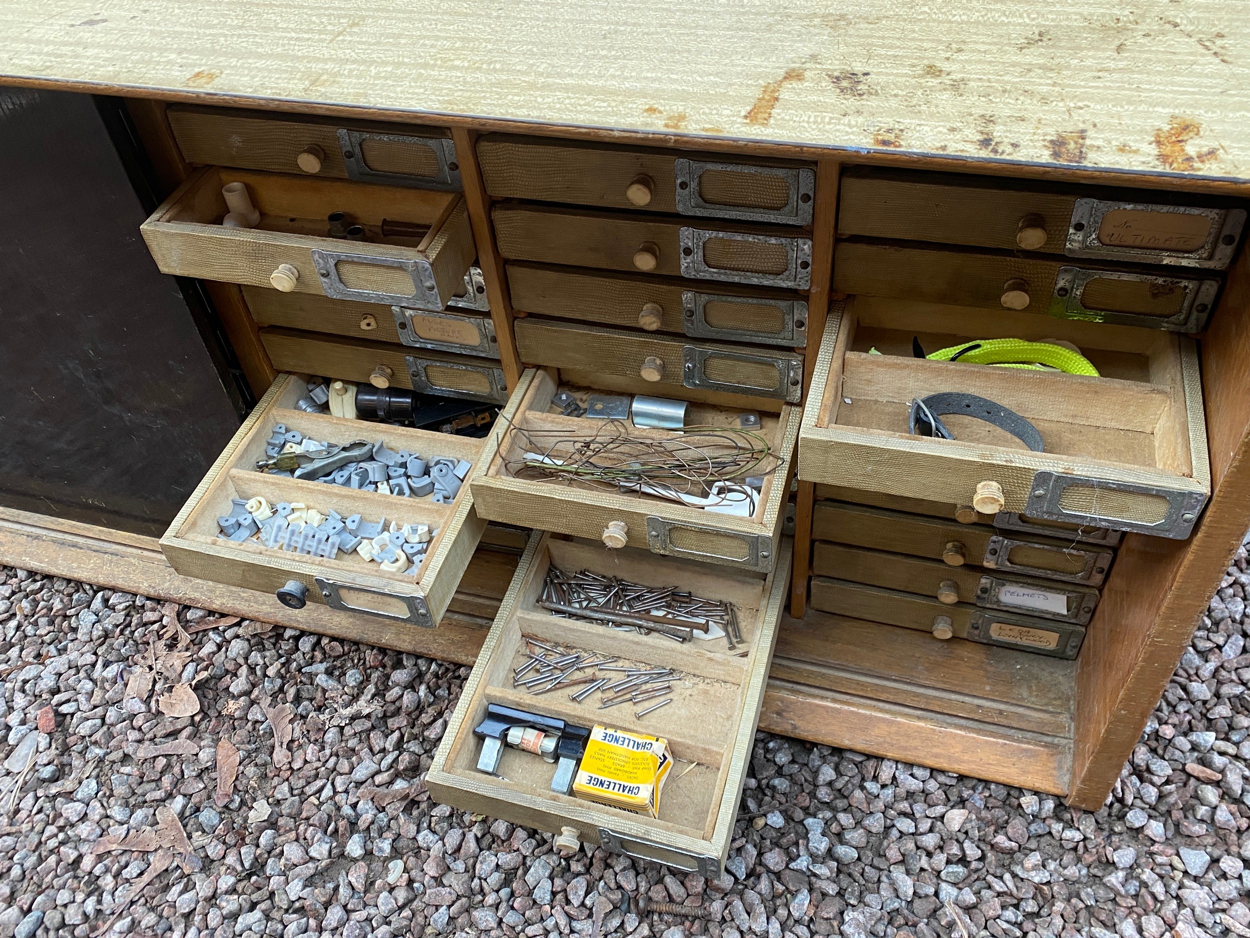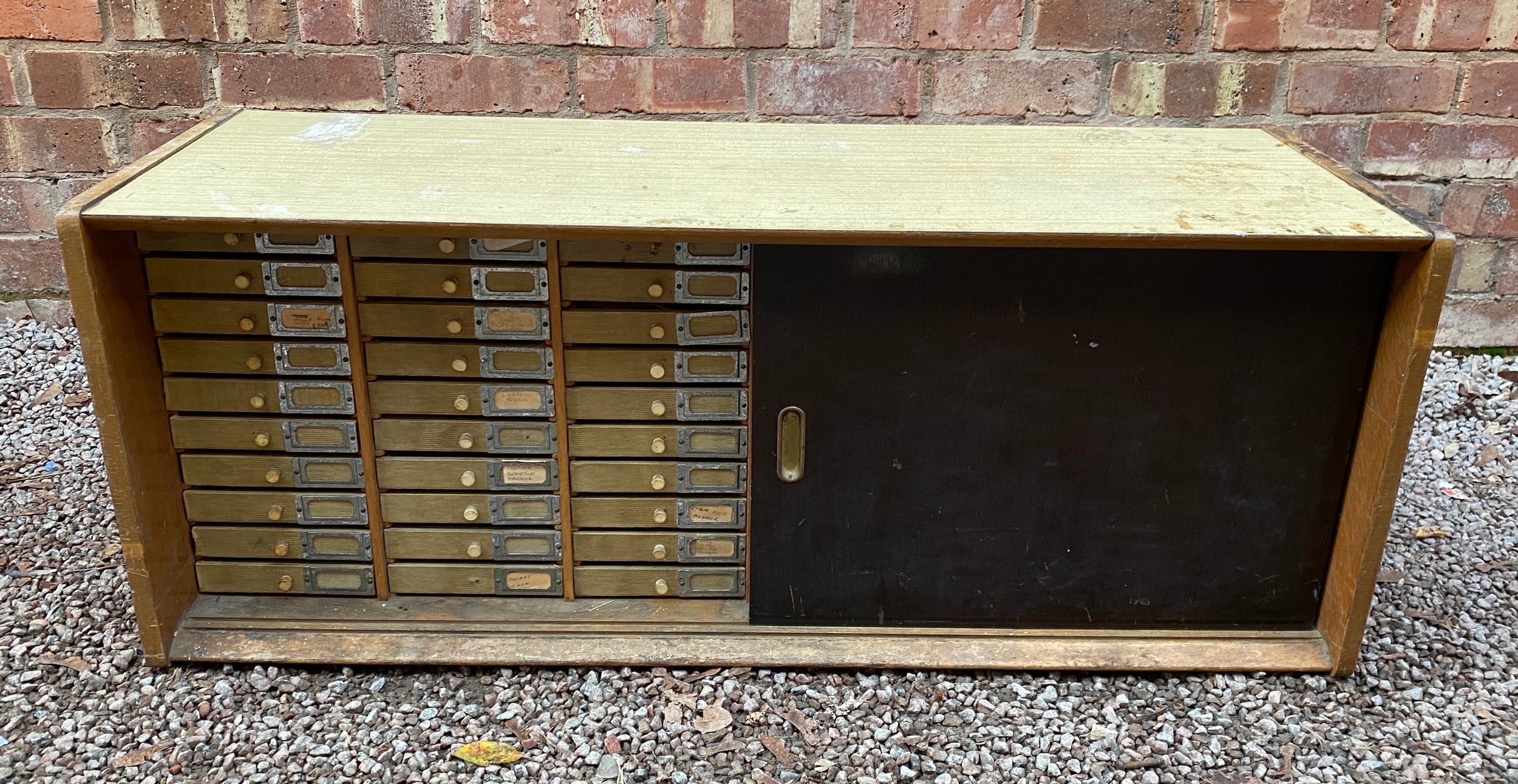 VINTAGE TEAK INDEX 60 DRAWER SLIDING DOOR CABINET