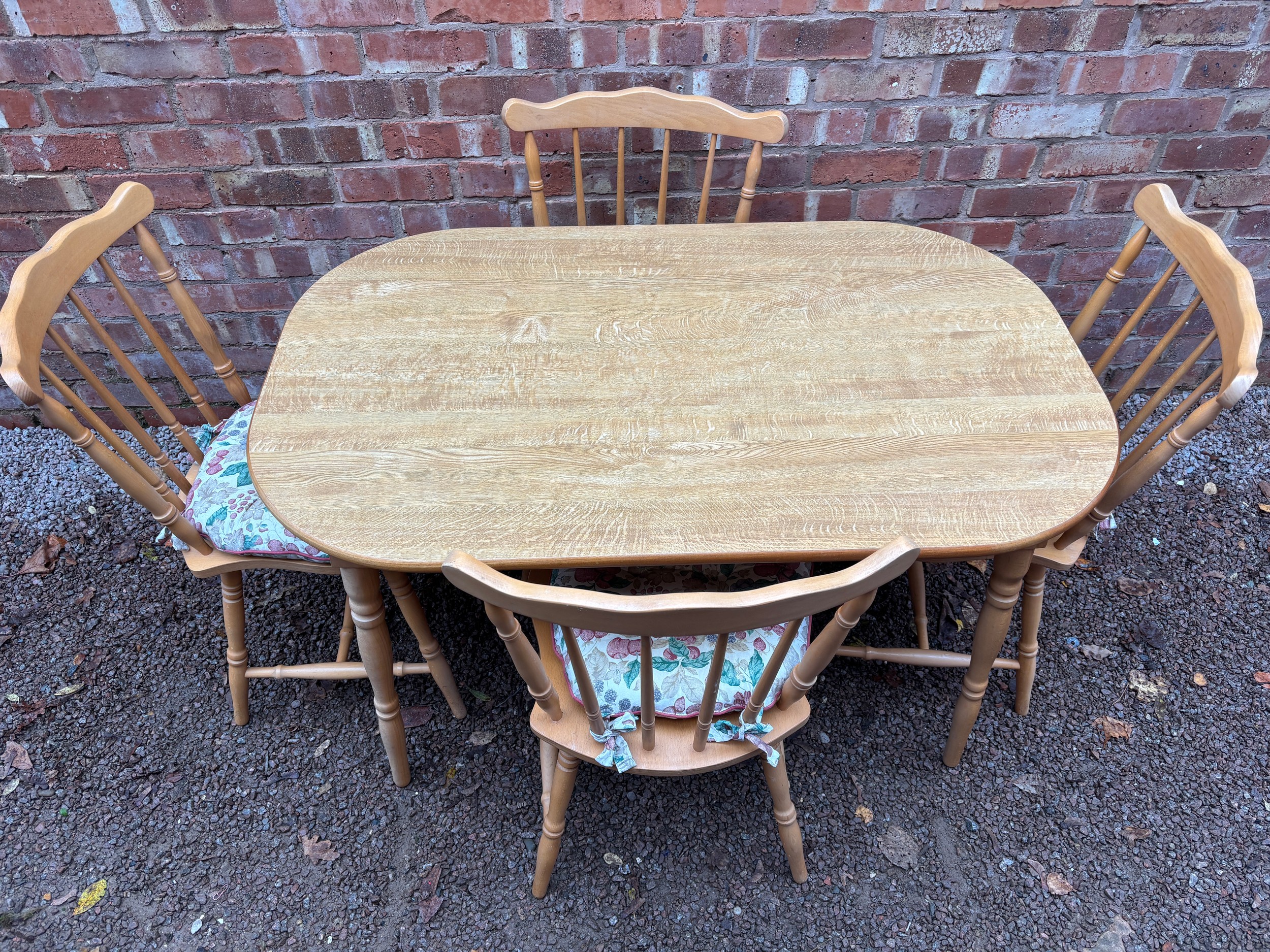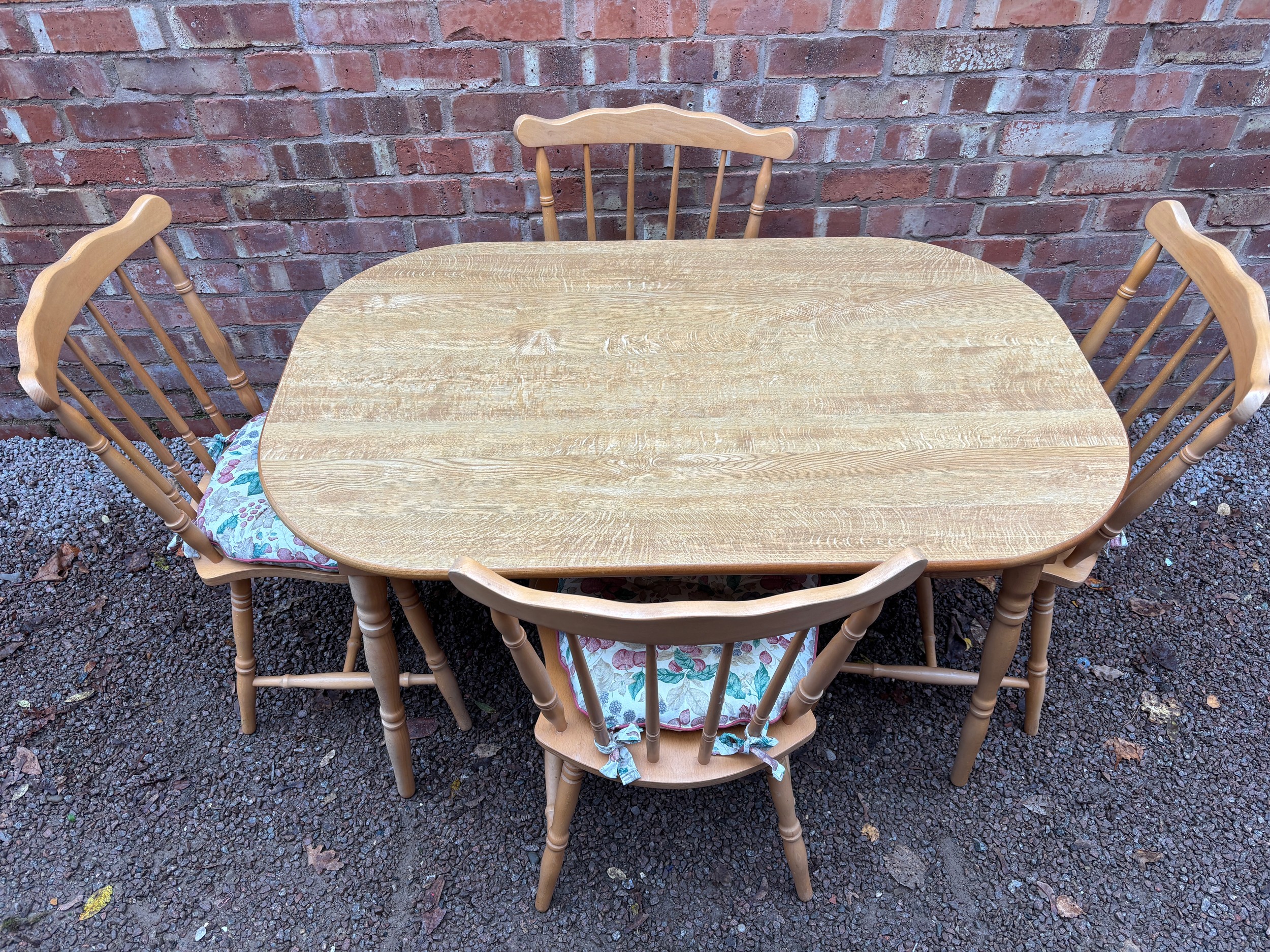 BEECH OVAL KITCHEN TABLE AND FOUR SPINDLE BACK CHAIRS