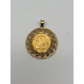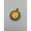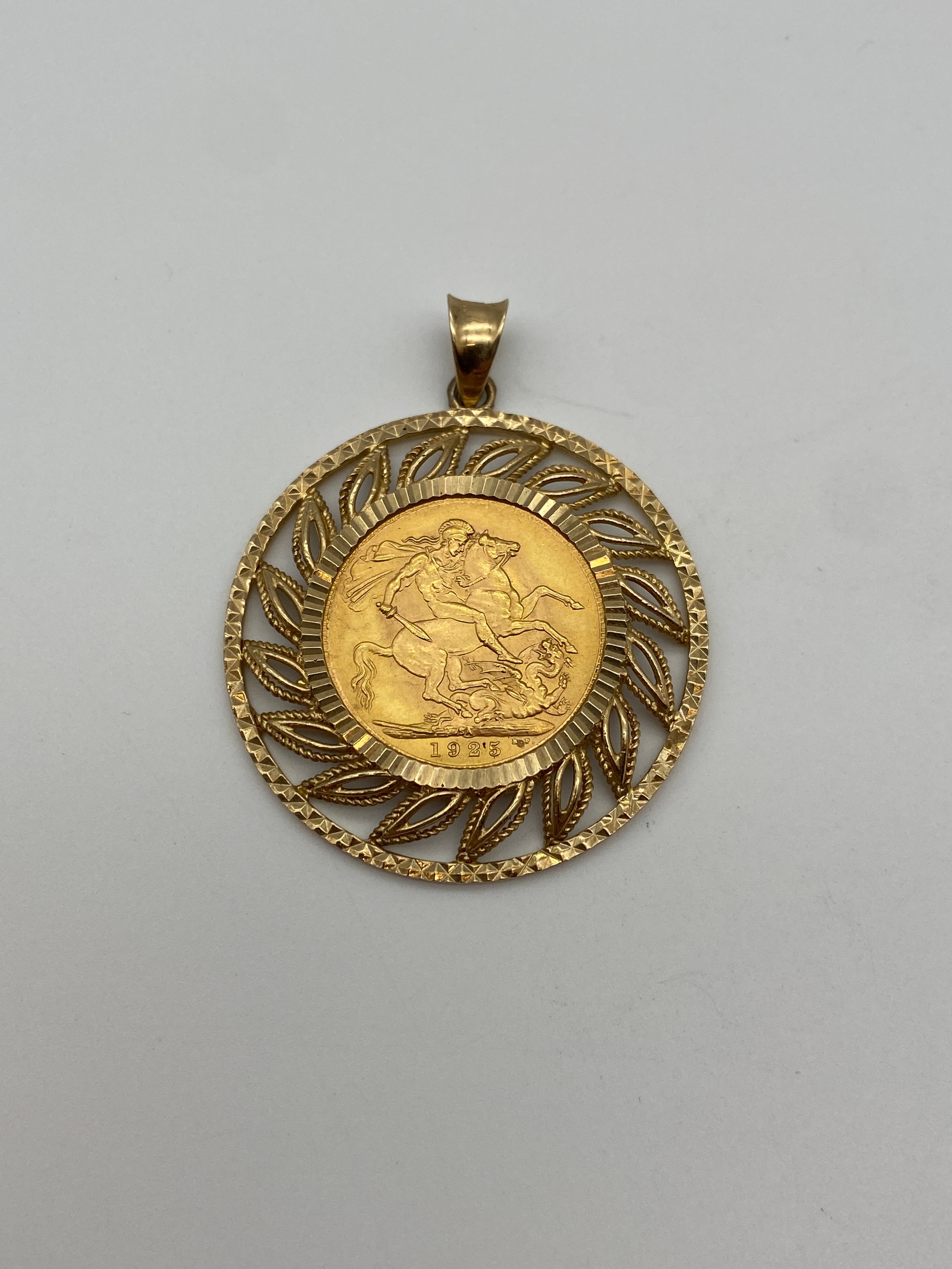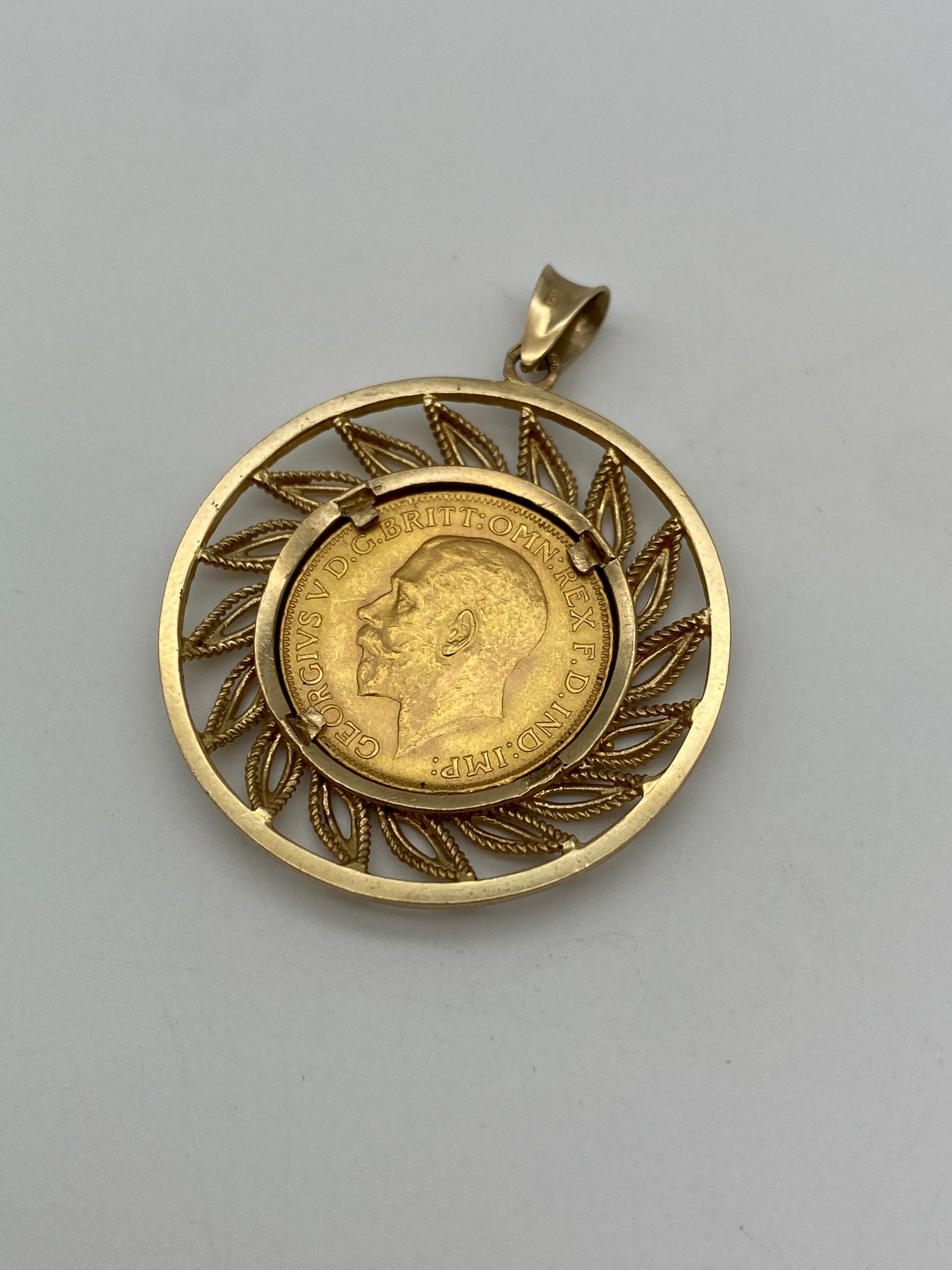 GEORGE V 1925 GOLD SOVEREIGN IN 9CT FILIGREE SWIRL MOUNT PENDANT 14.1G OVERALL