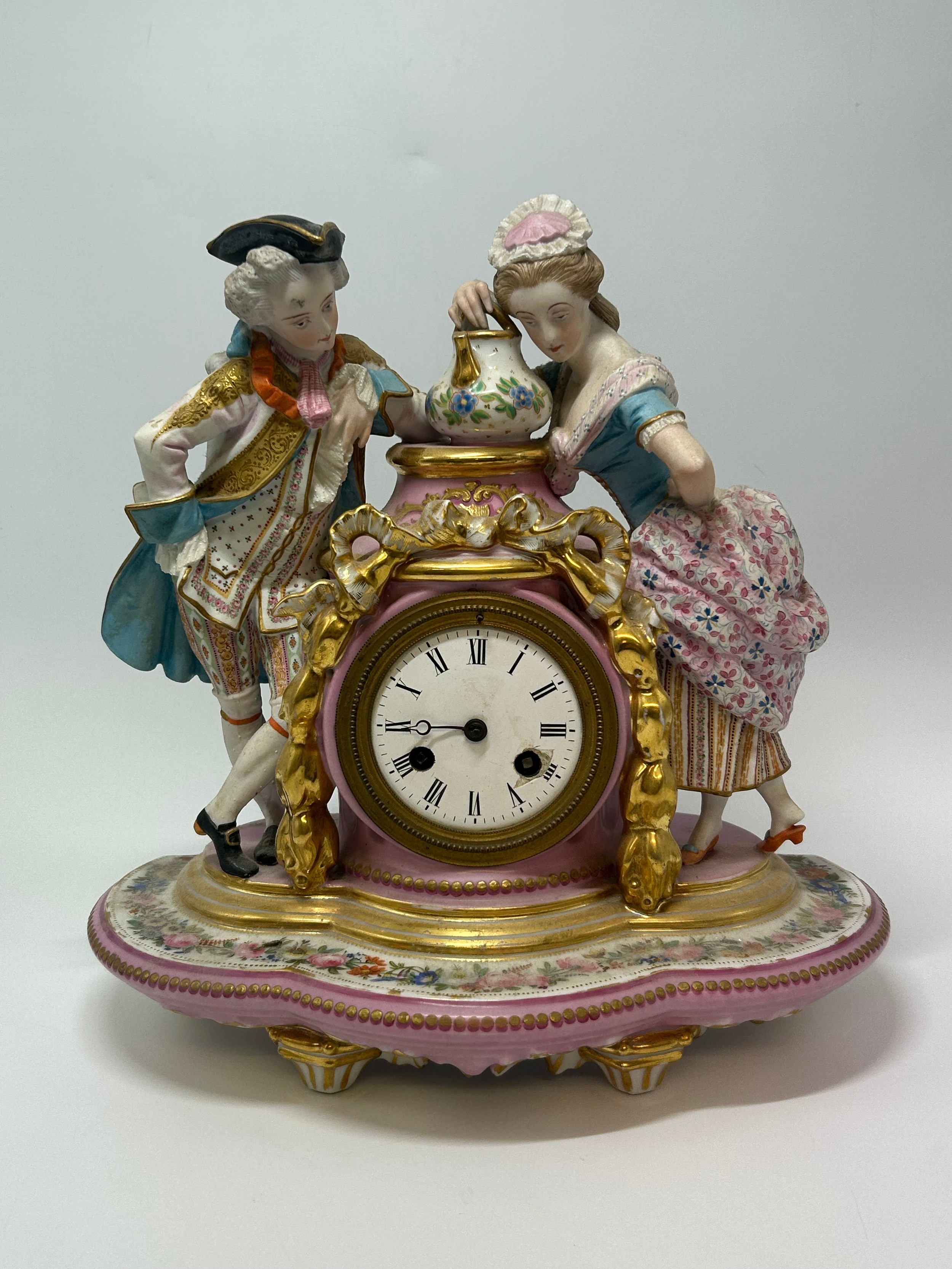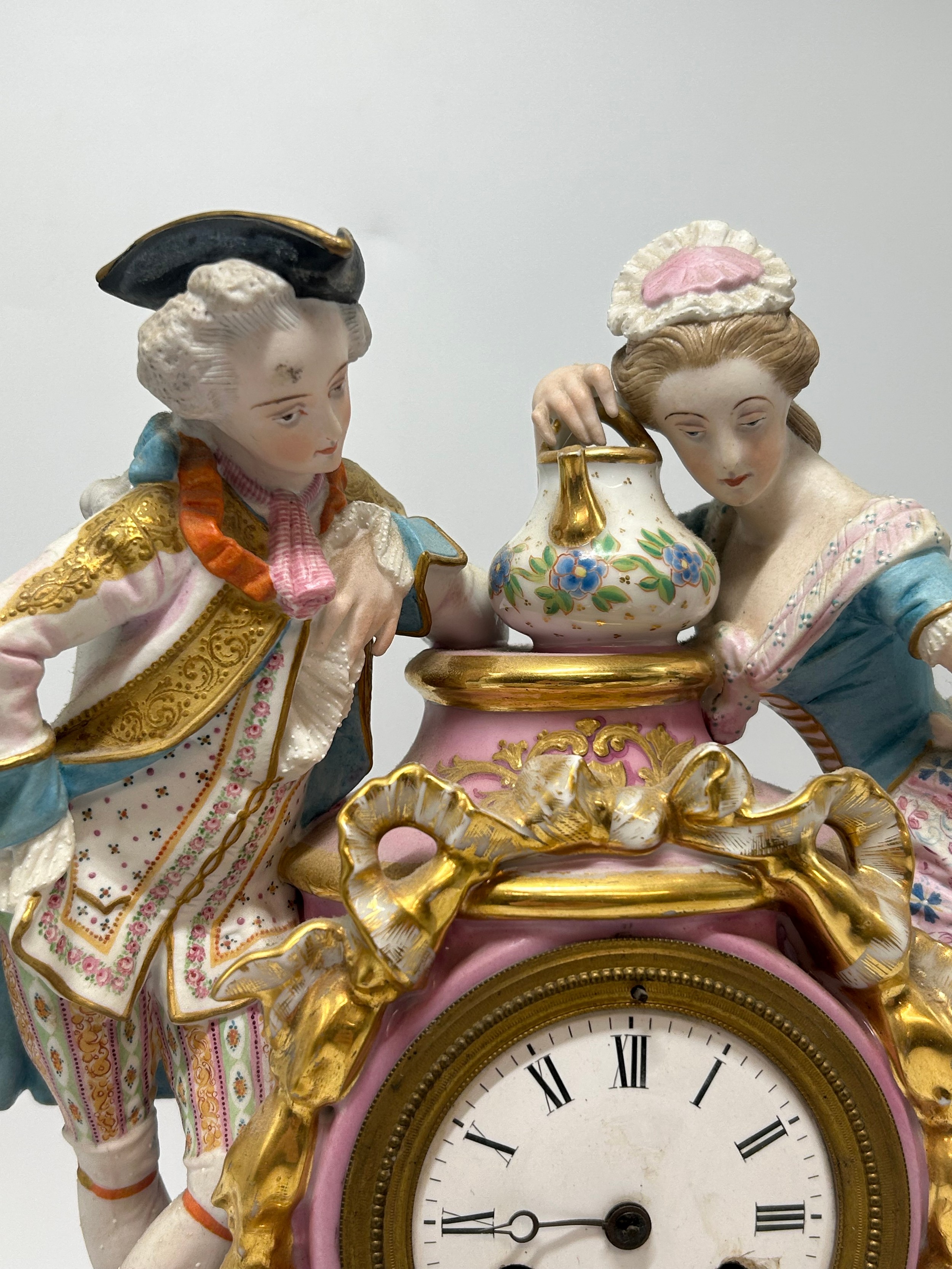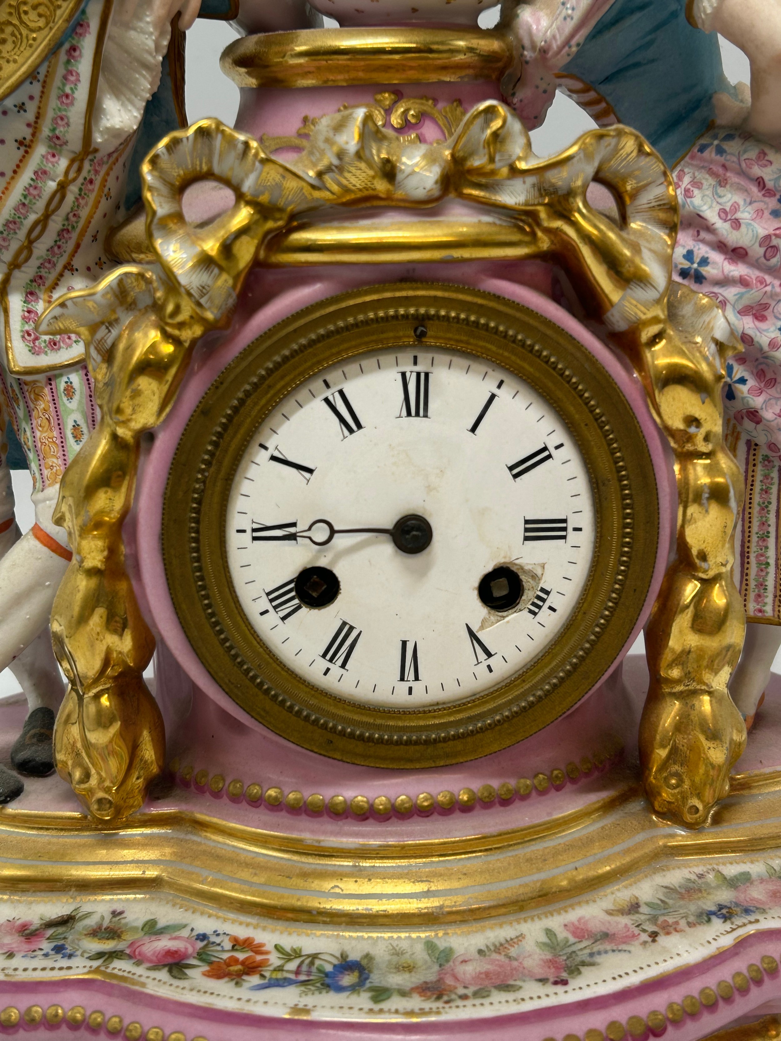CONTINENTAL PORCELAIN FIGURAL AND GILT DECORATED CLOCK