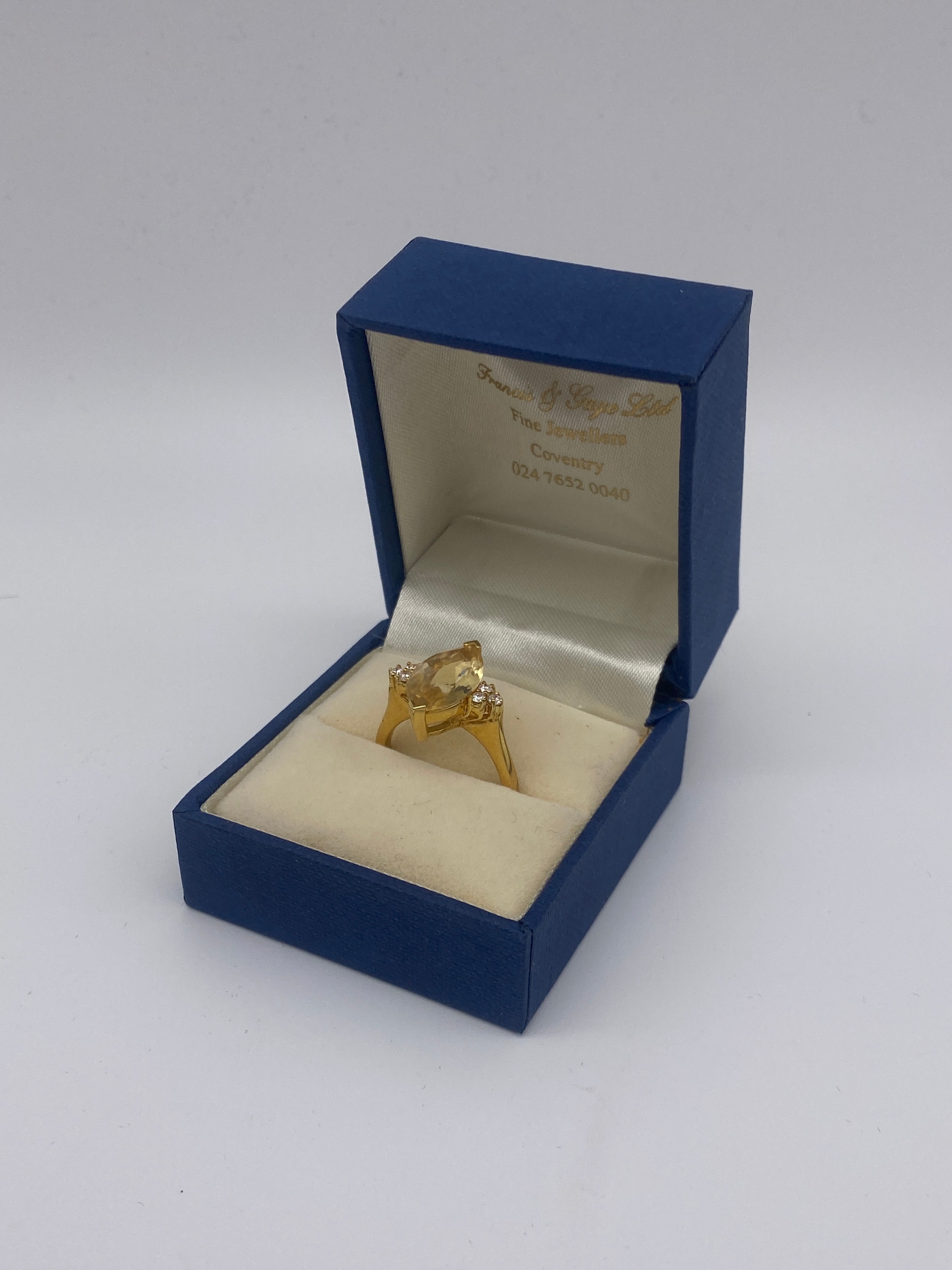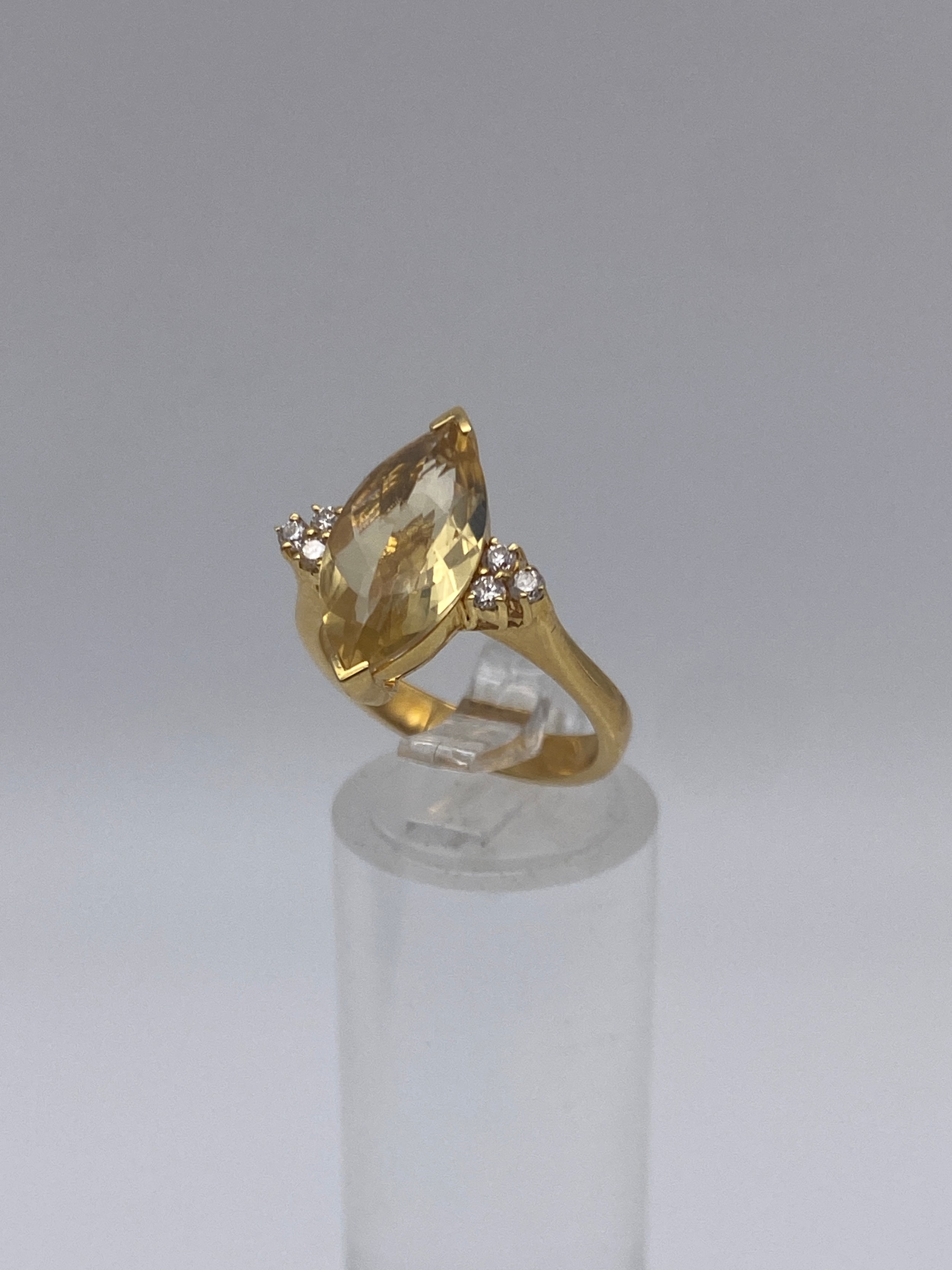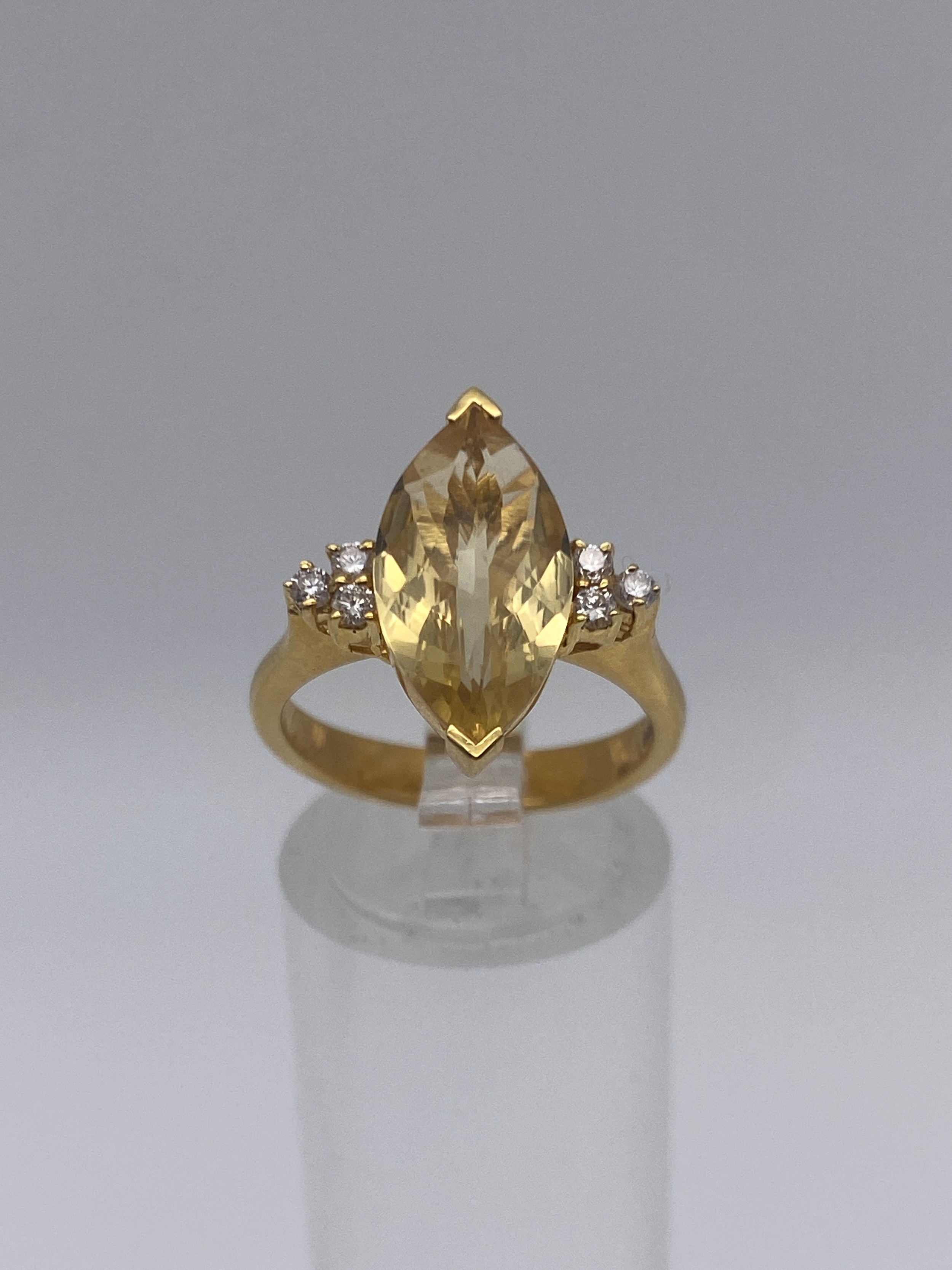 750/18CT MARQUISE CITRINE AND DIAMOND RING SIZE M 5.7G
