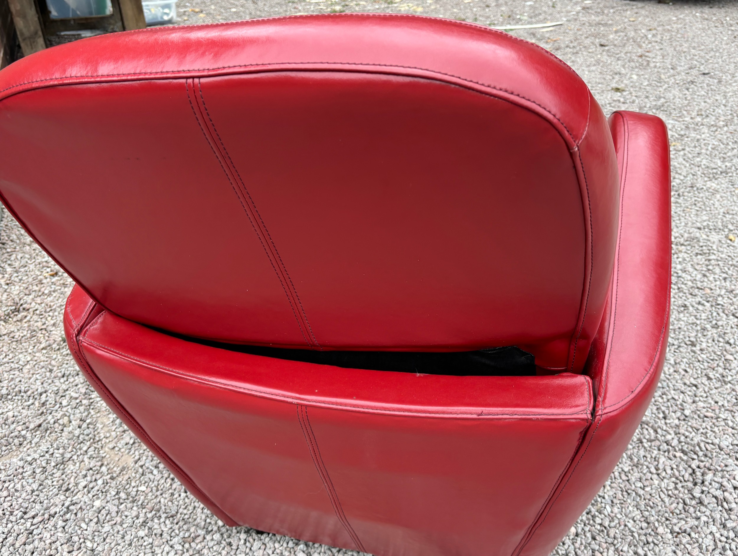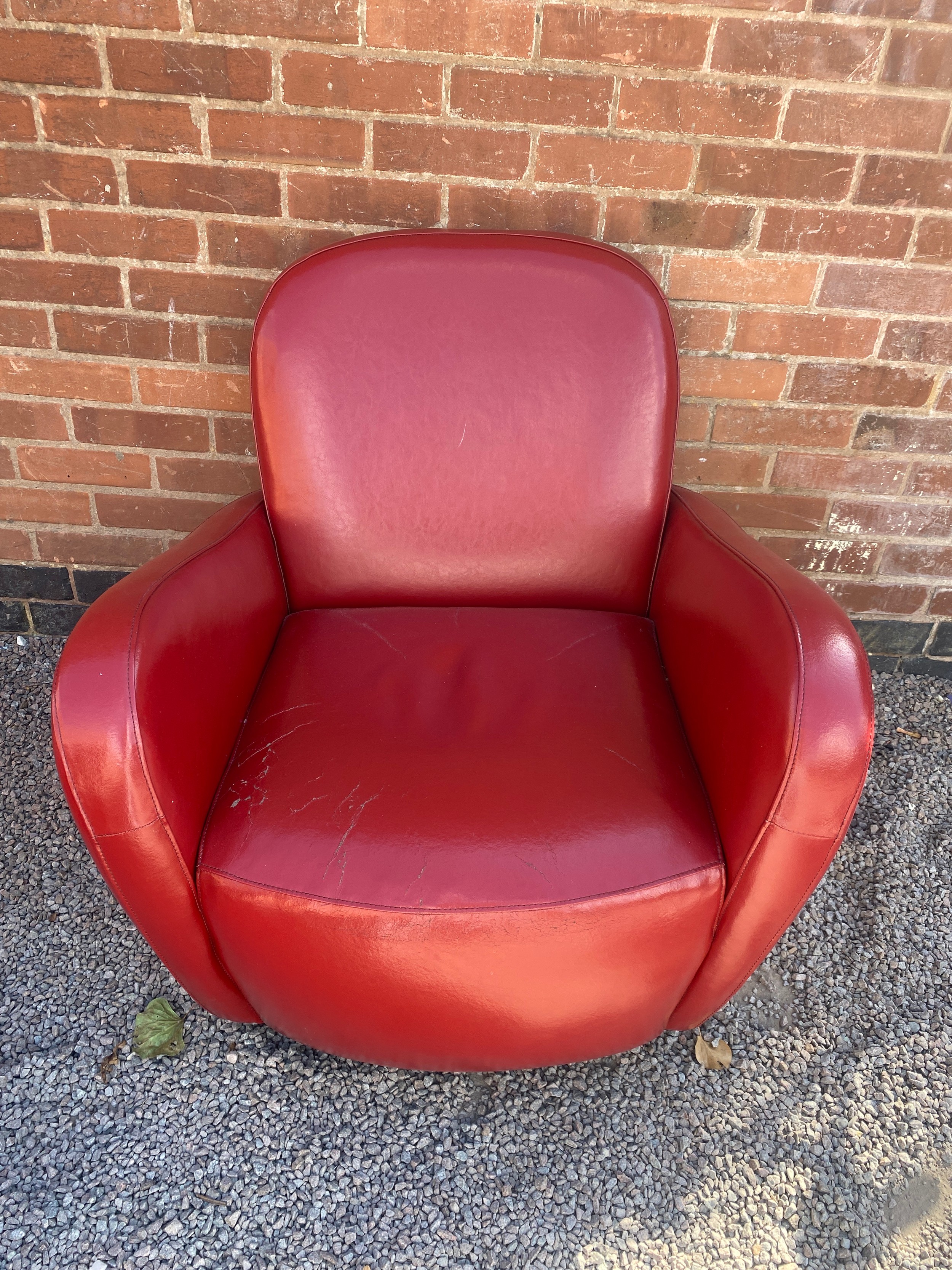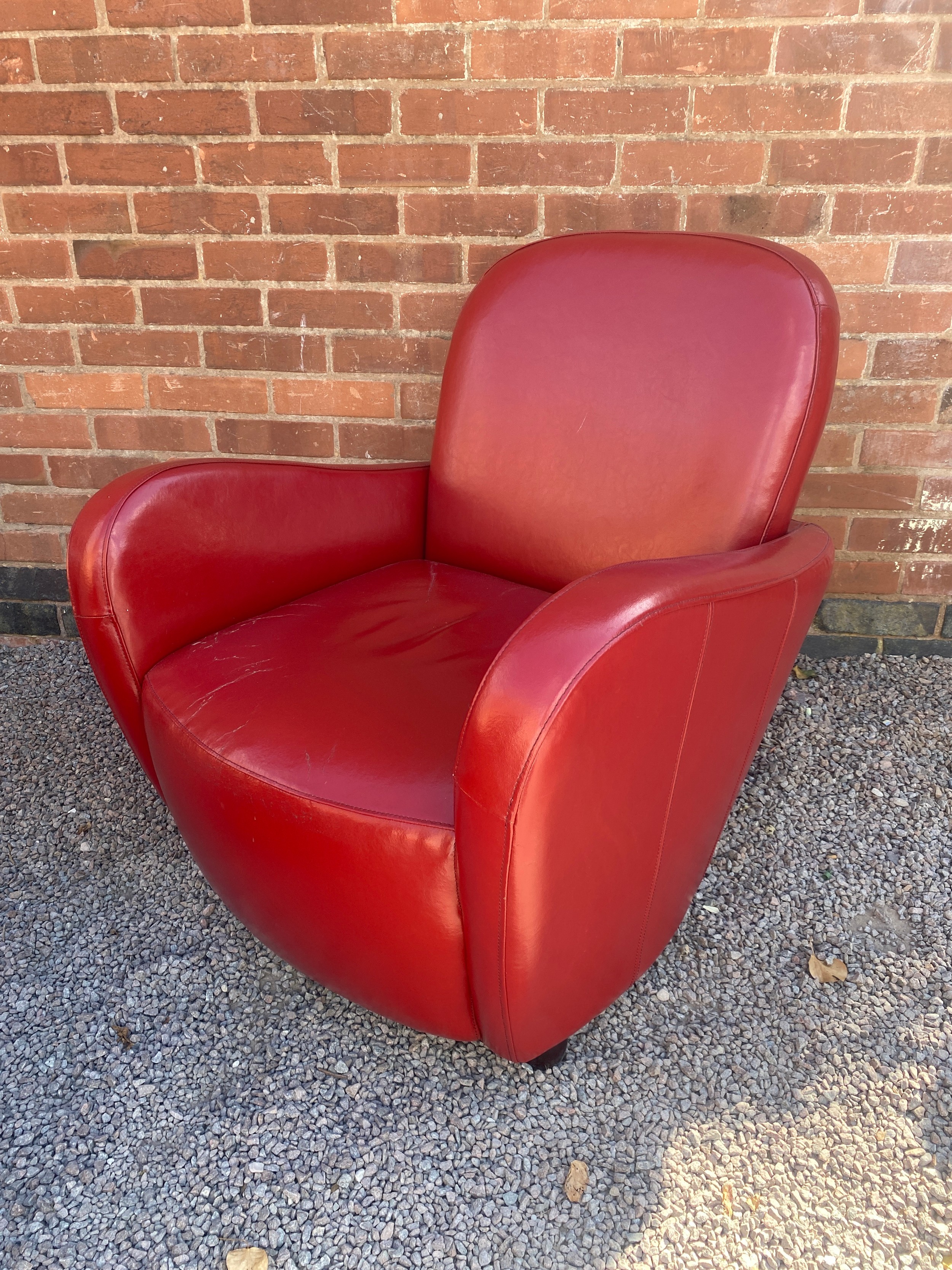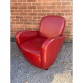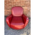 RED LEATHER ART DECO STYLE TUB-CHAIR
