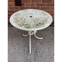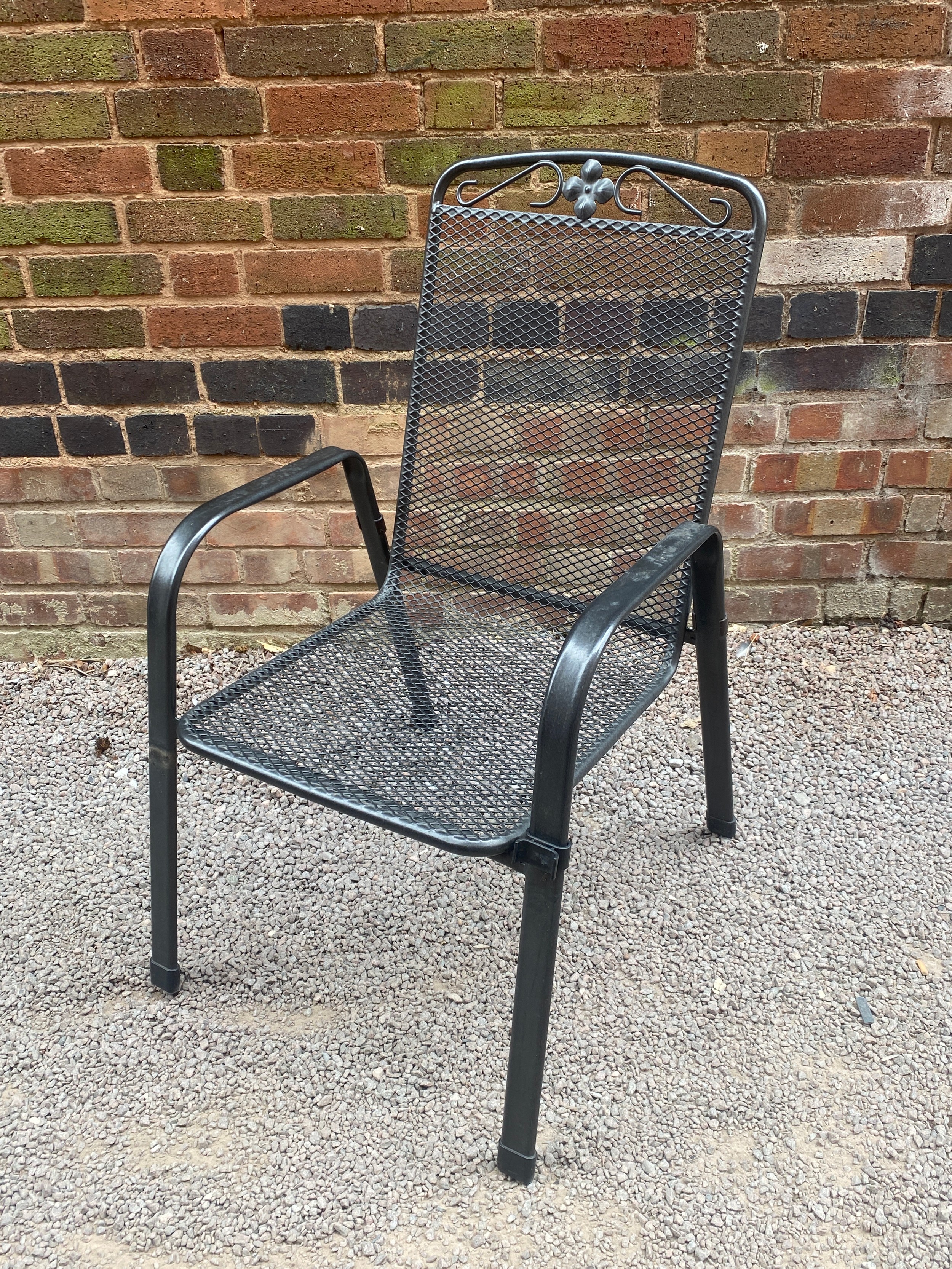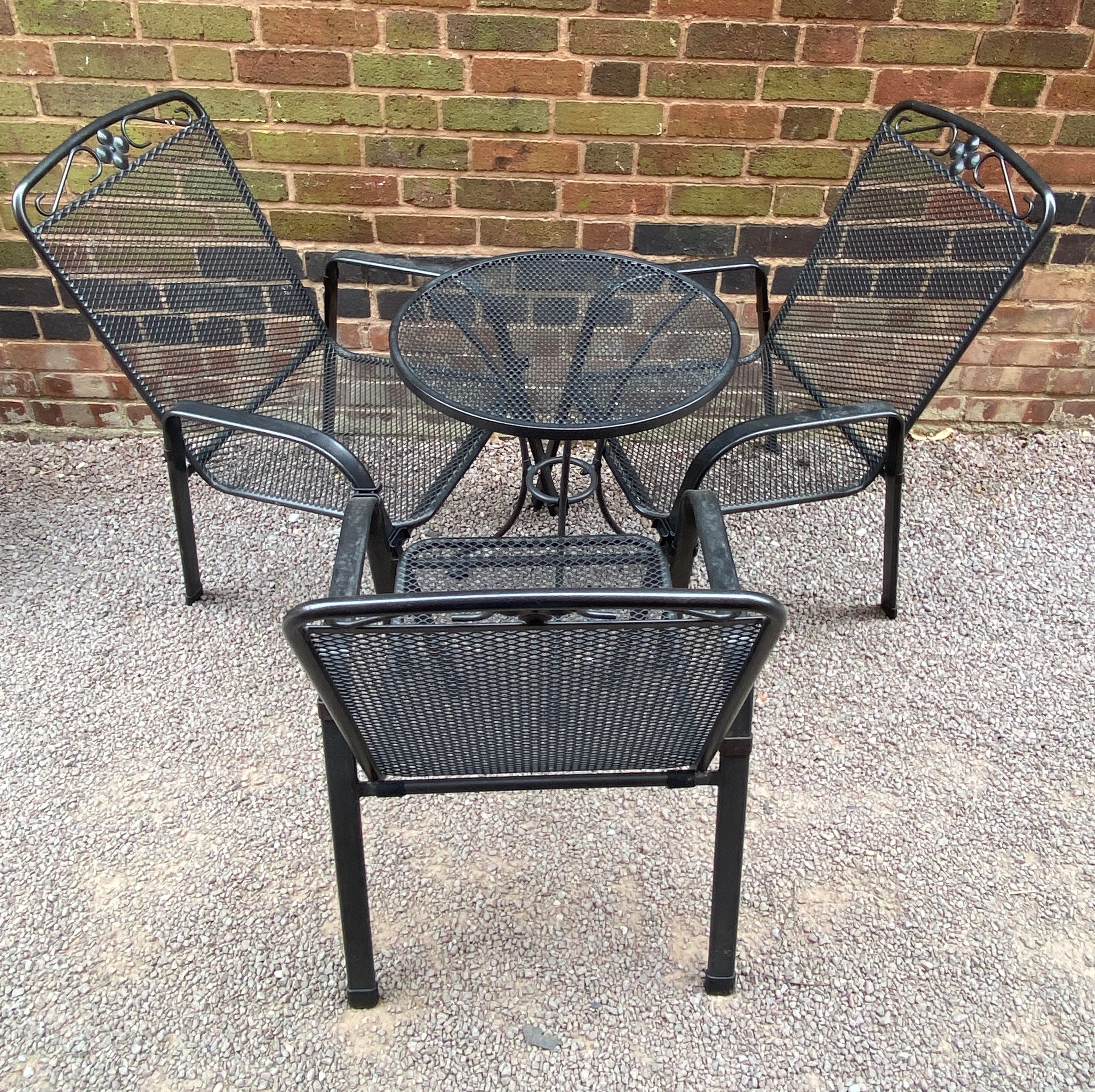 BLACK GARDEN PATIO TABLE AND THREE LATTICE CHAIRS