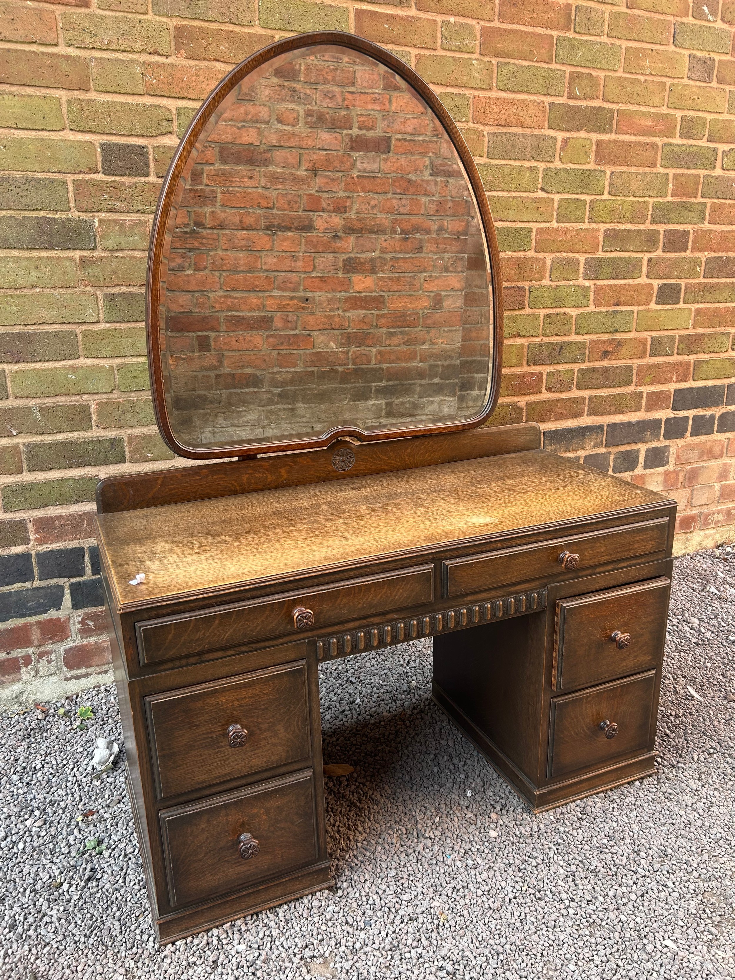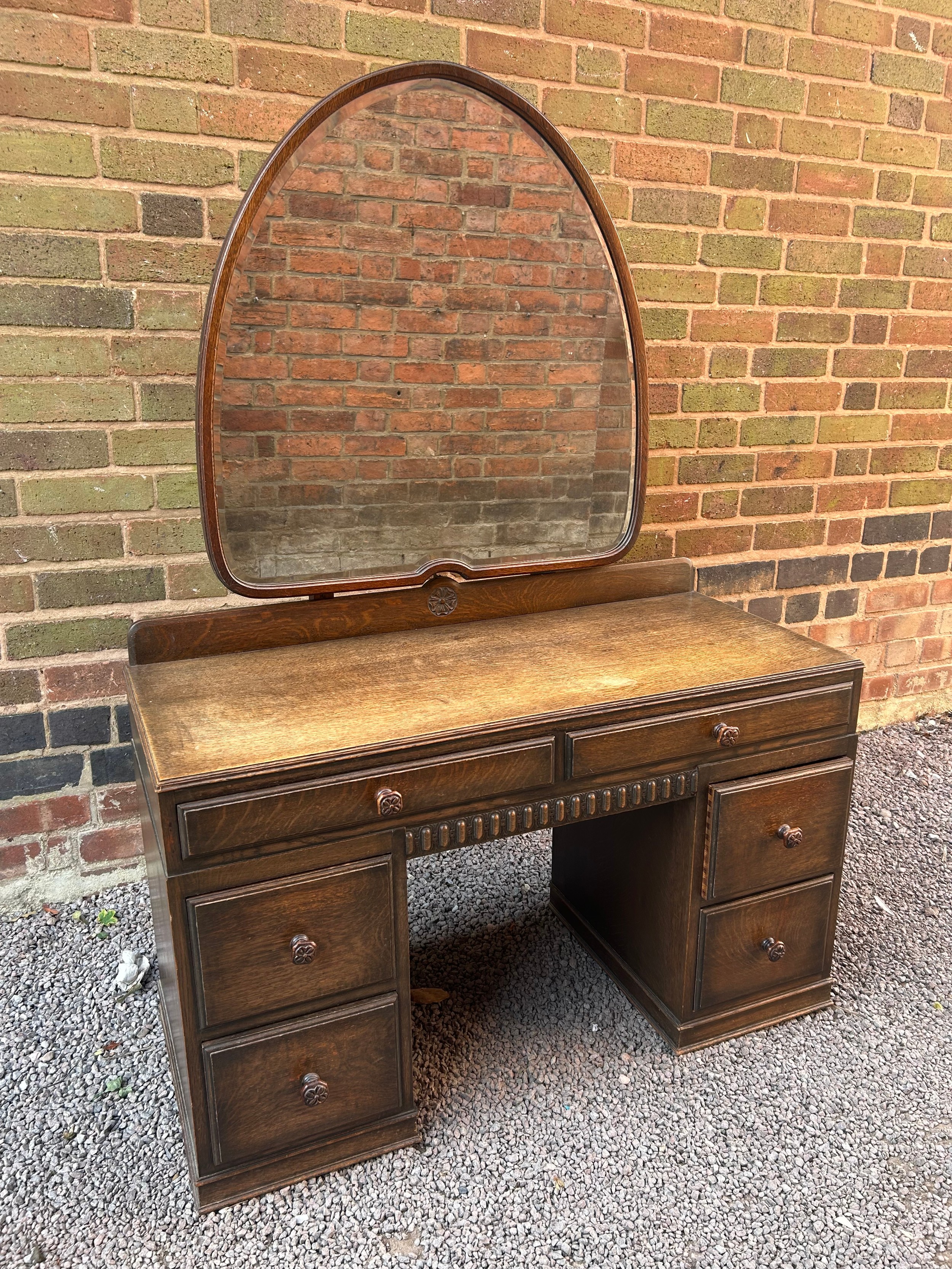 OAK KNEEHOLE CARVED DRESSING TABLE