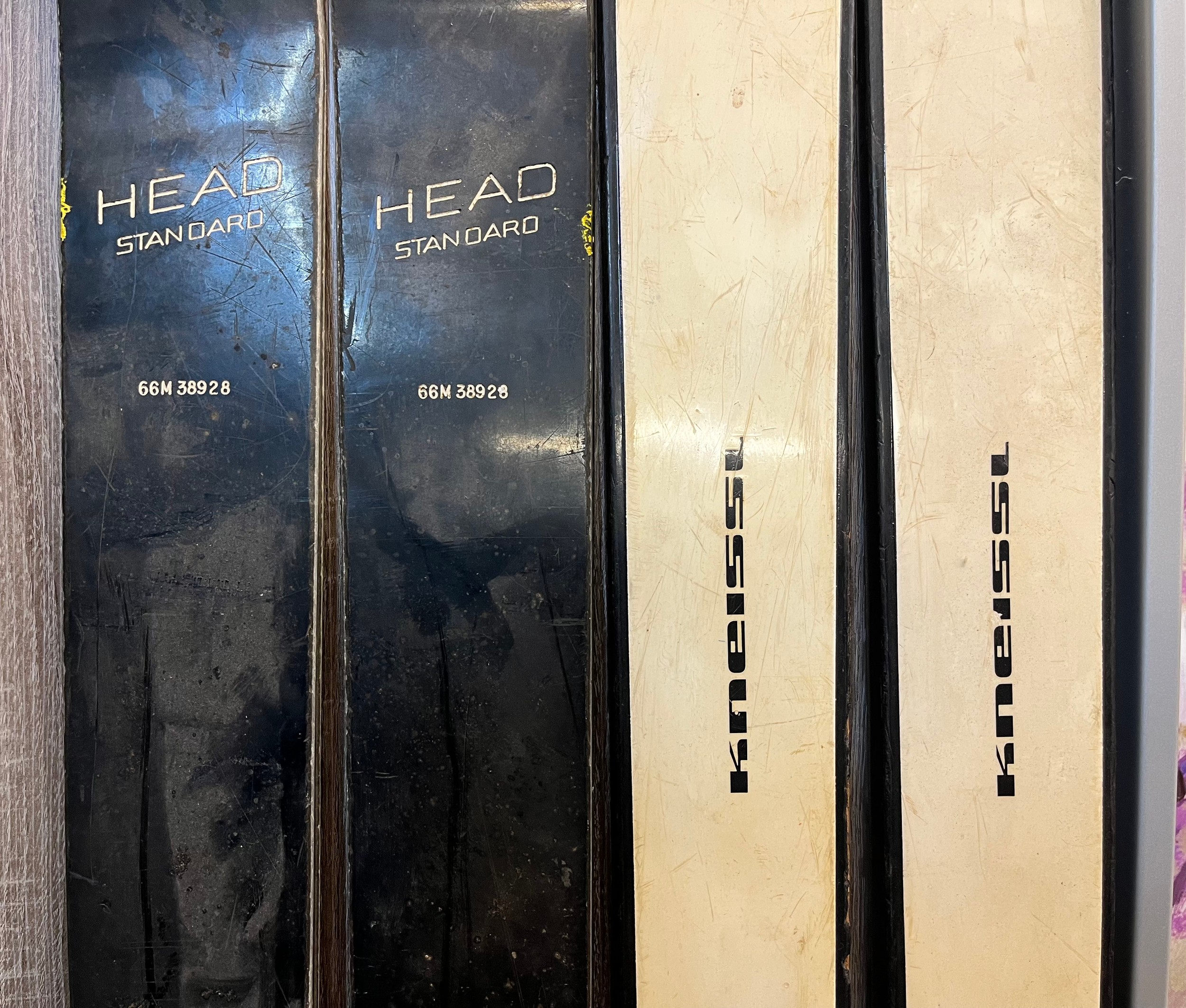 PAIR OF VINTAGE HEAD STANDARD AND KNEISSI SKIS