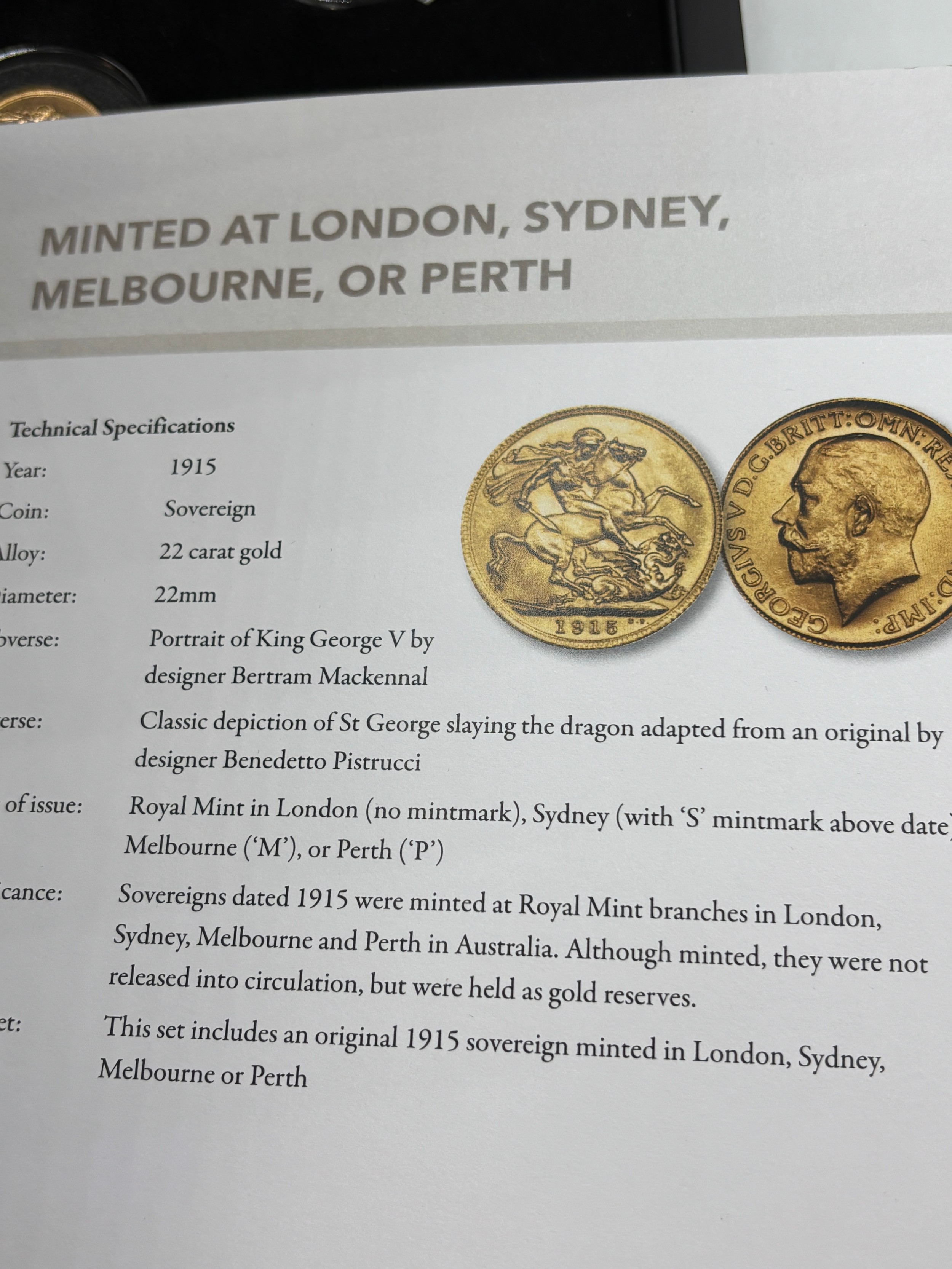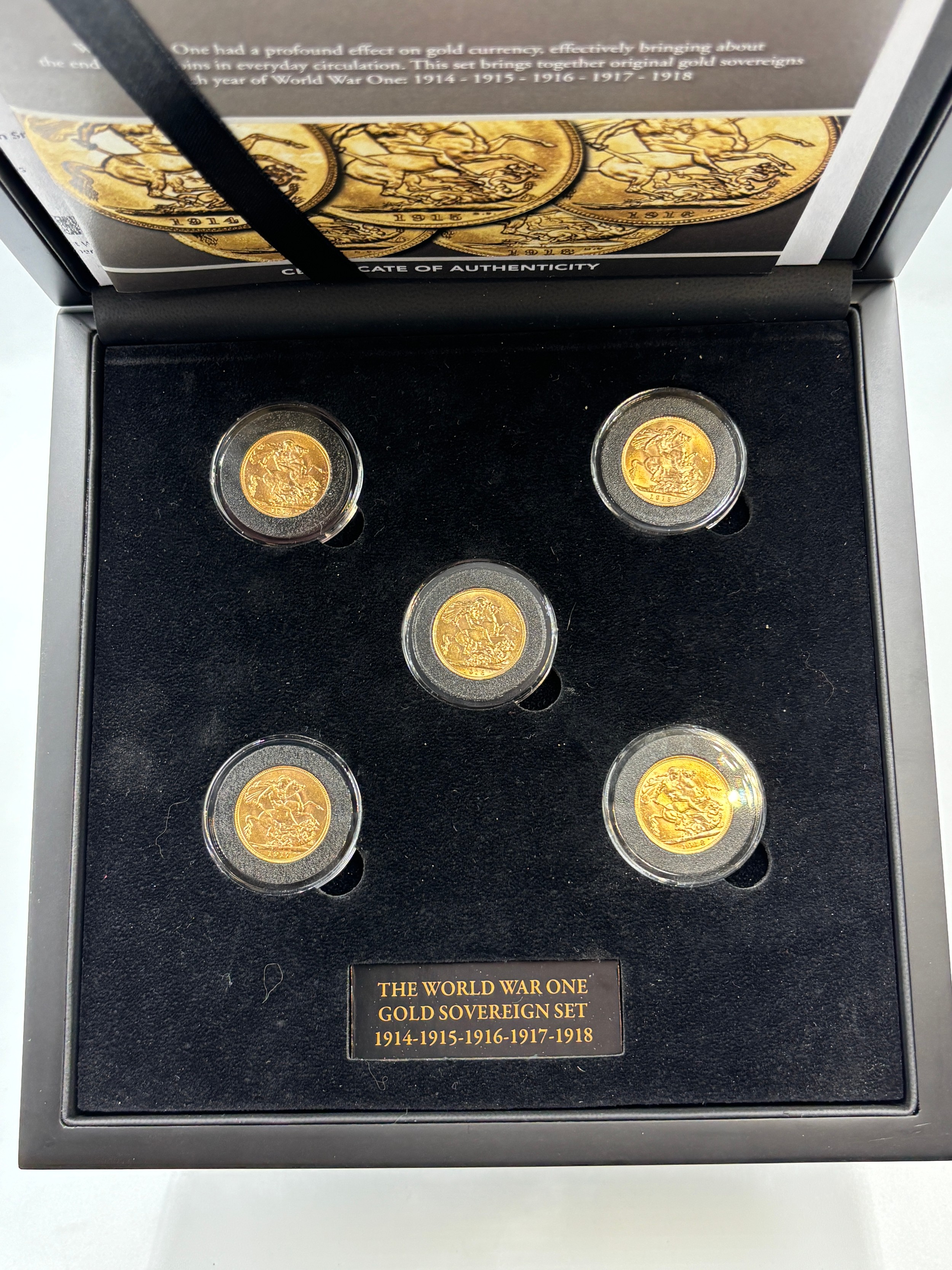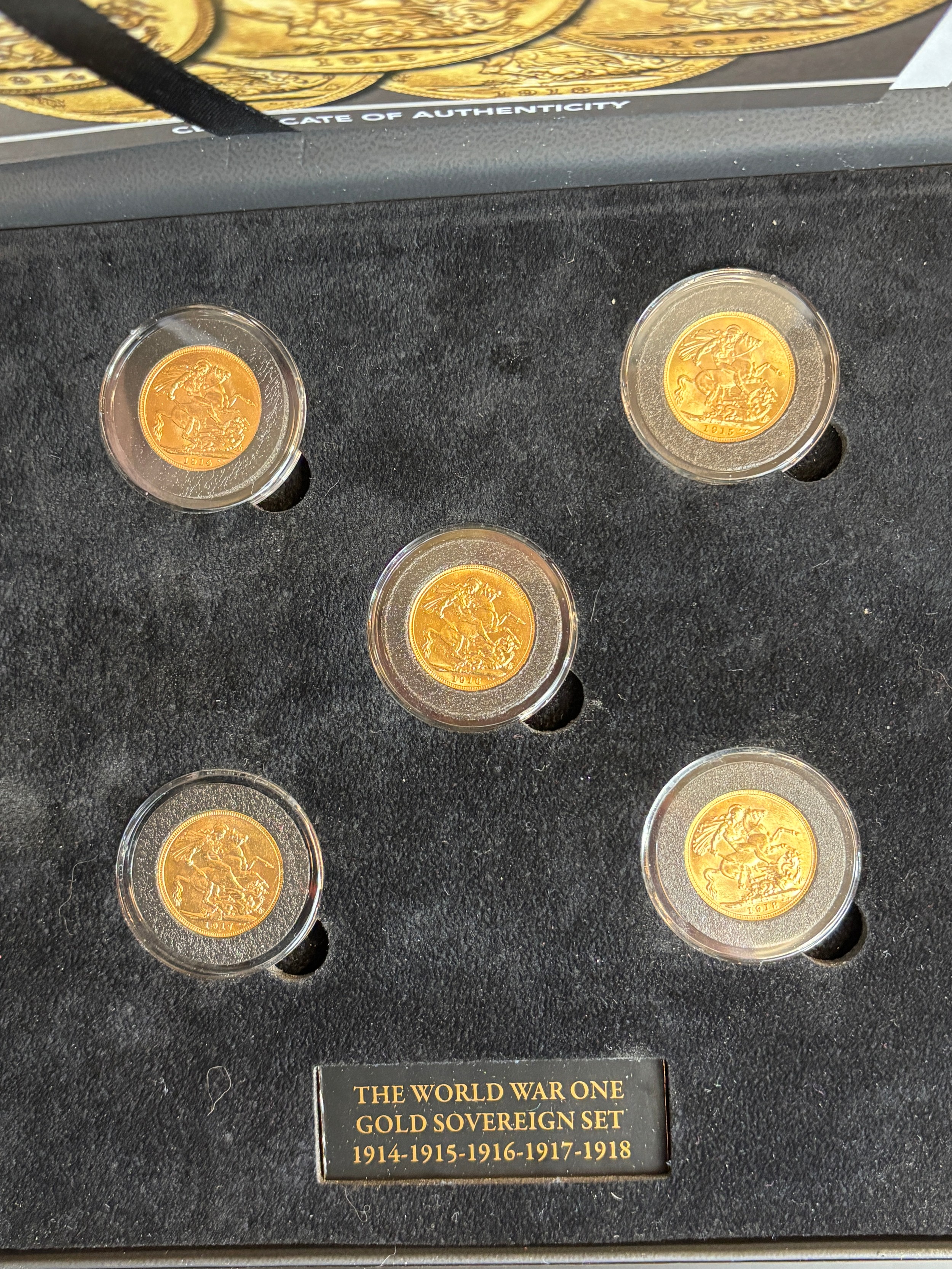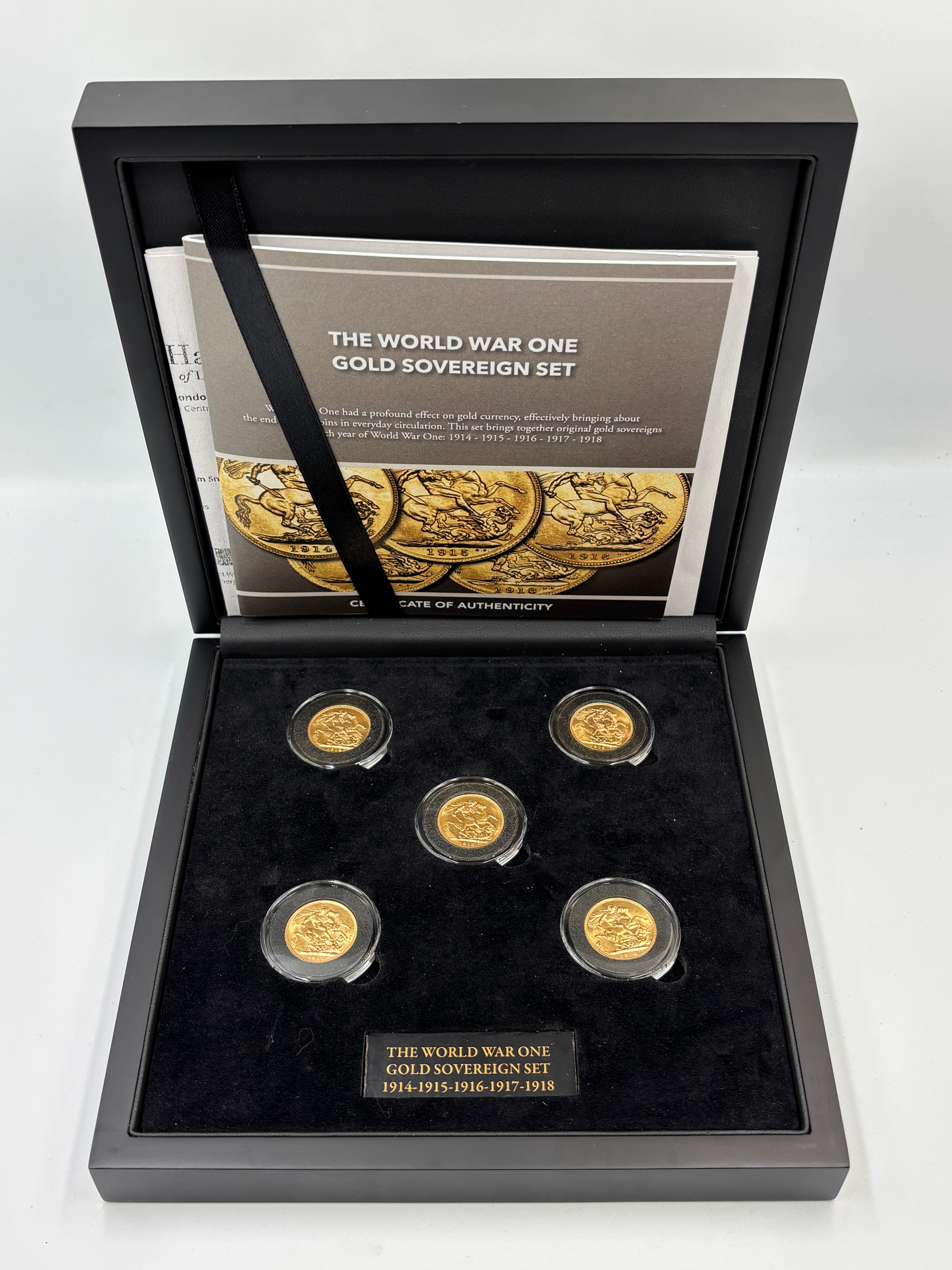 CASED WWI 1914-1918 GOLD PROOF SOVEREIGN SET (5 COINS)