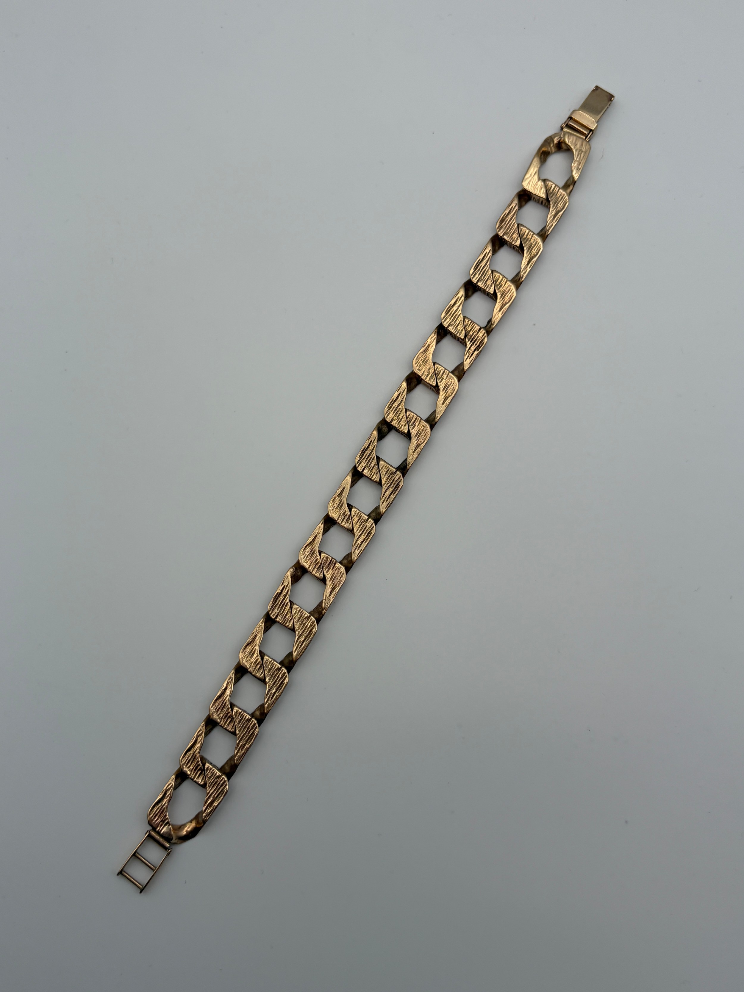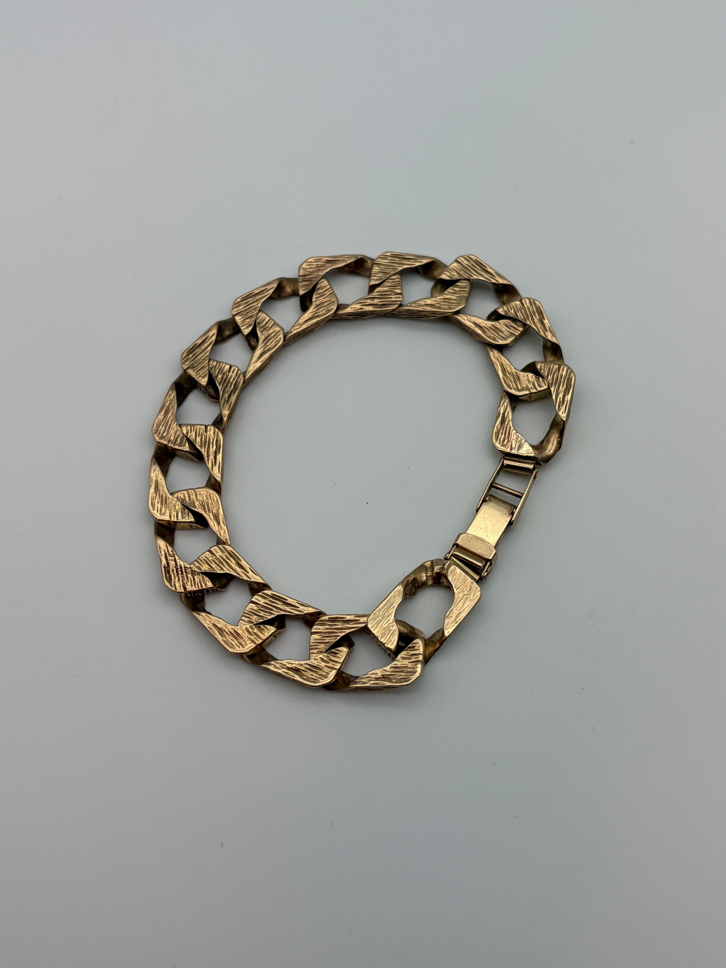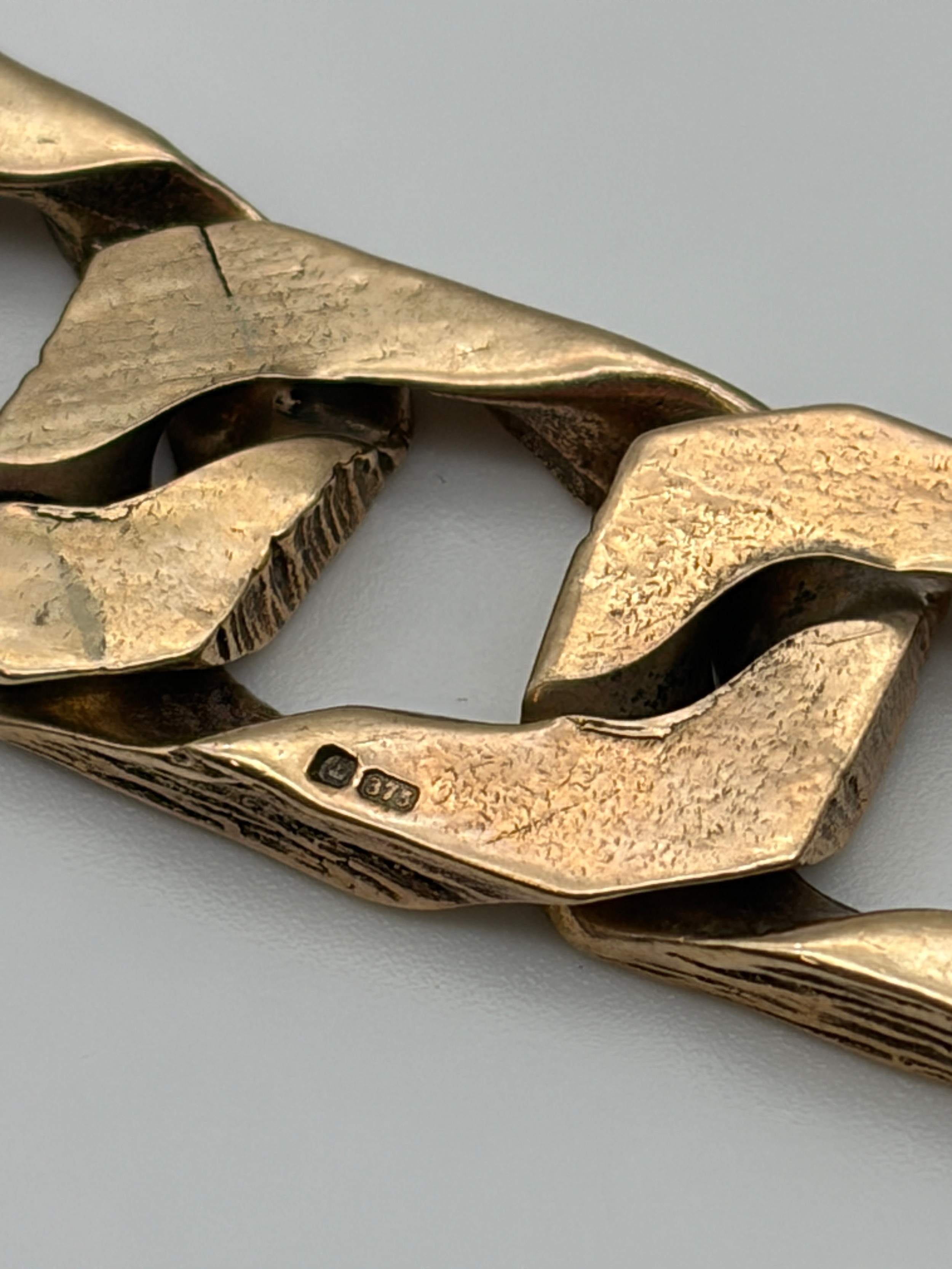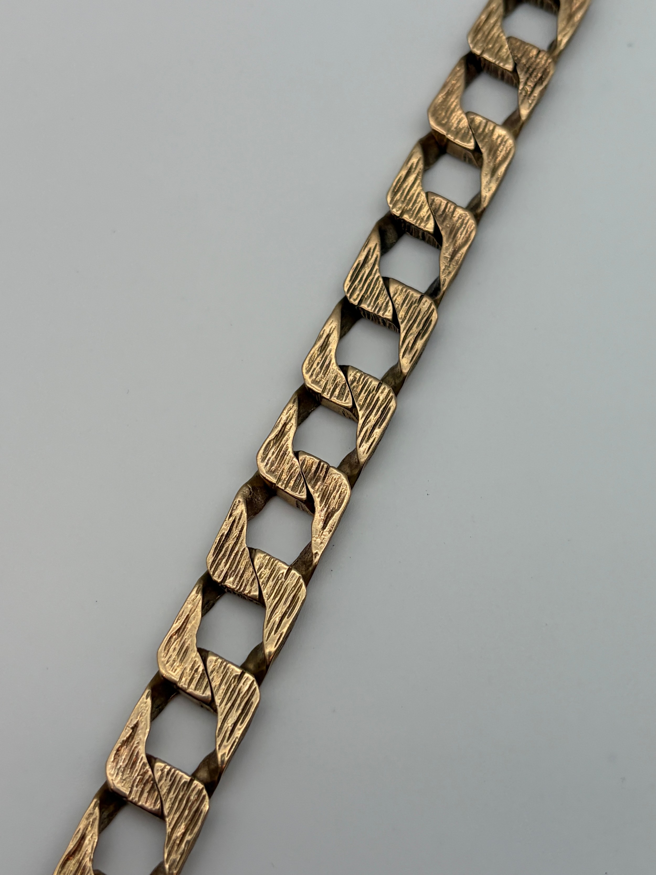 9CT GOLD TEXTURED BARK BROAD FLAT LINK BRACELET 38.7G