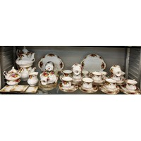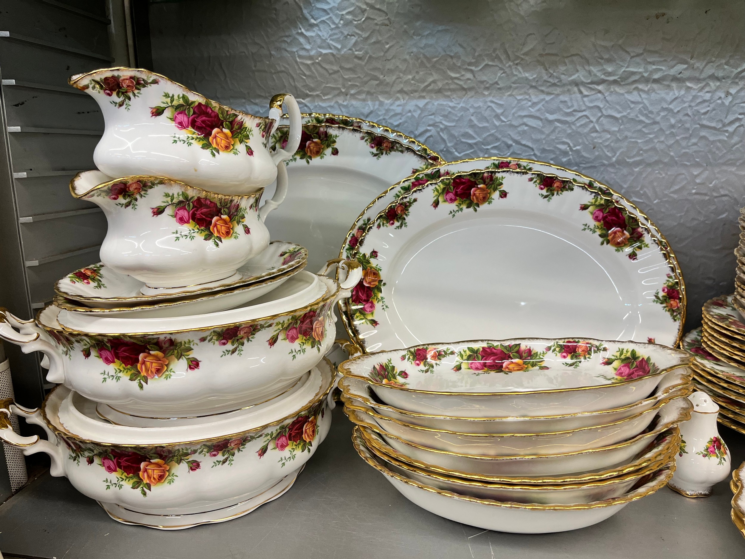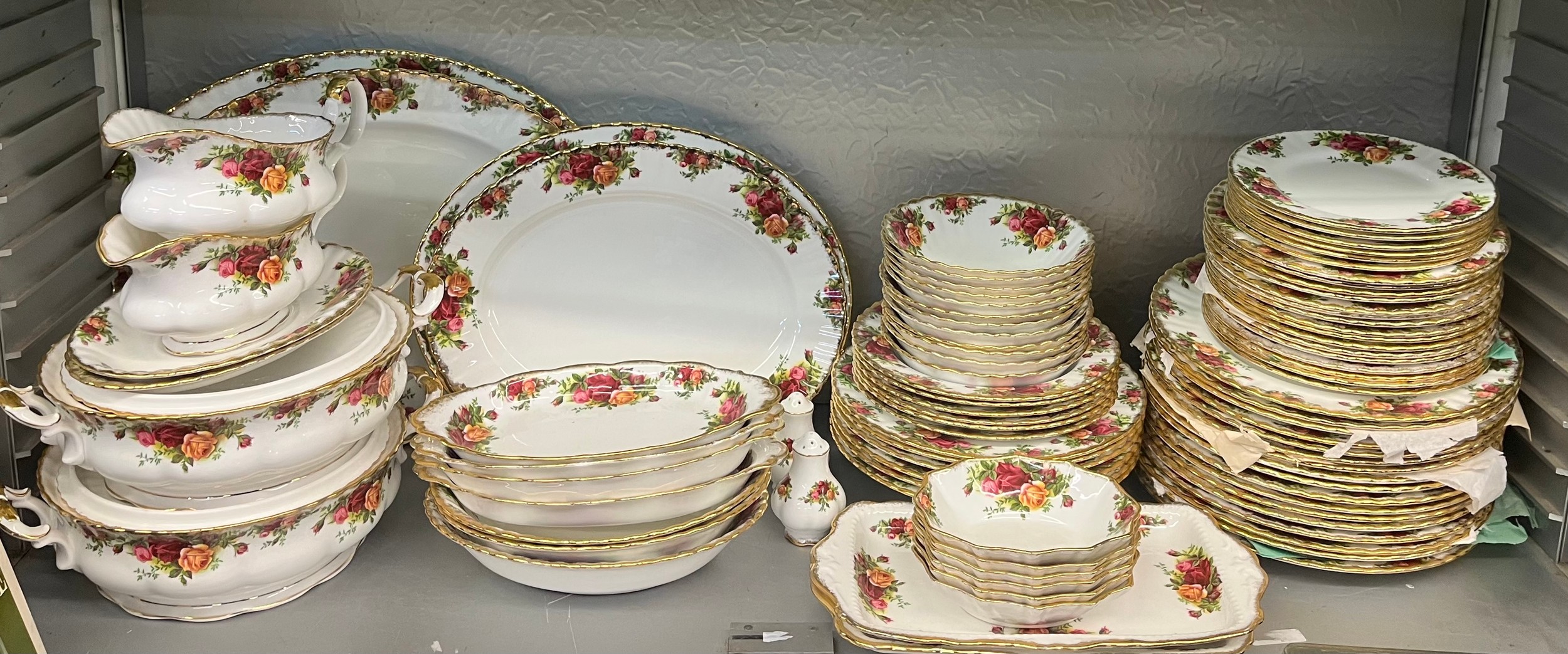 ROYAL ALBERT OLD COUNTRY ROSES DINNER SERVICE INCLUDING TUREENS, SAUCE BOATS AND GRADUATED PLATTERS