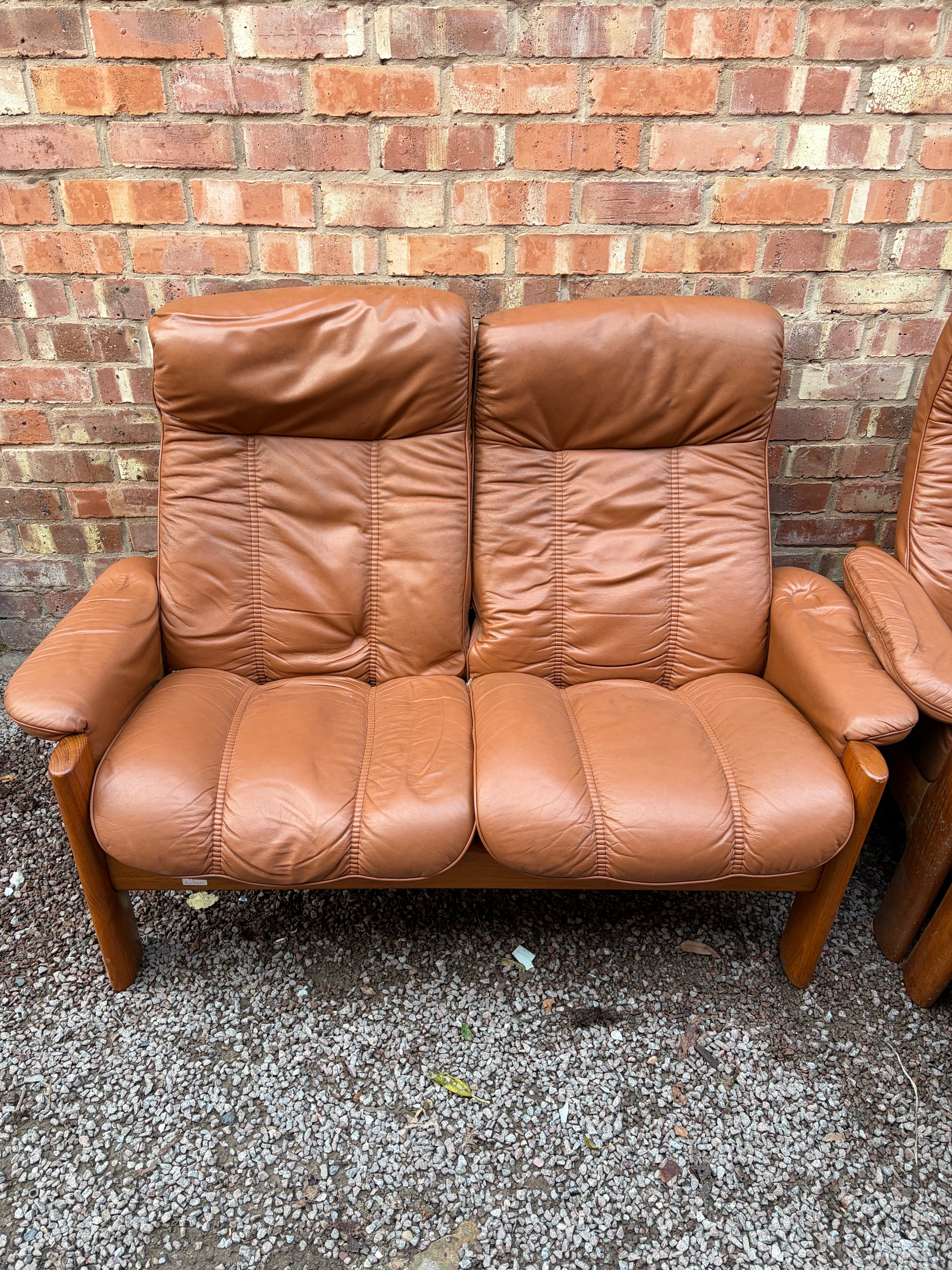 EKORNES NO.625 BROWN WOODEN SHOW FRAME SOFA SUITE WITH STORA...