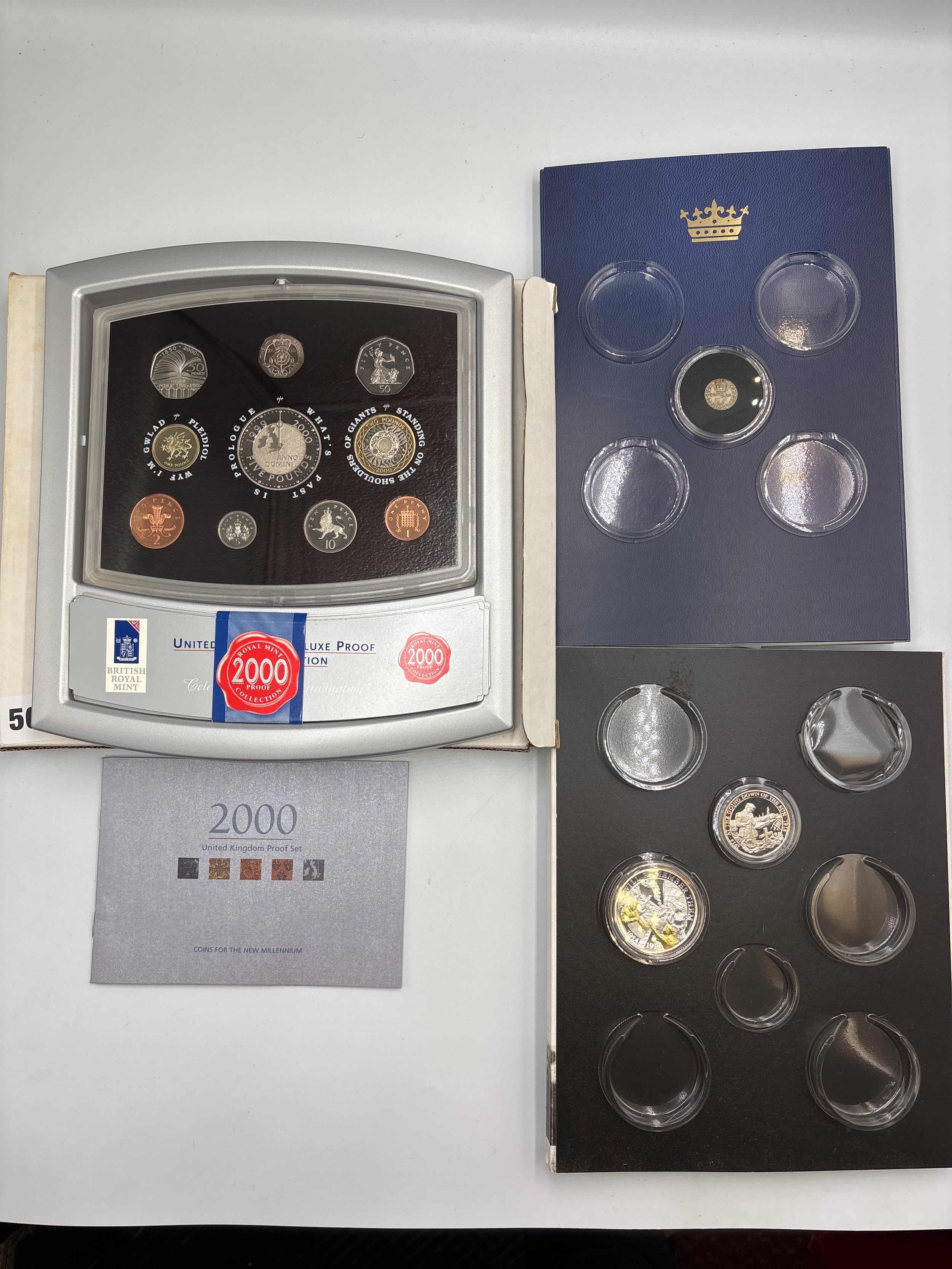 2000 UNITED KINGDOM DELUXE COIN PROOF SET IN DISPLAY CASE AND TWO INCOMPLETE COIN SETS